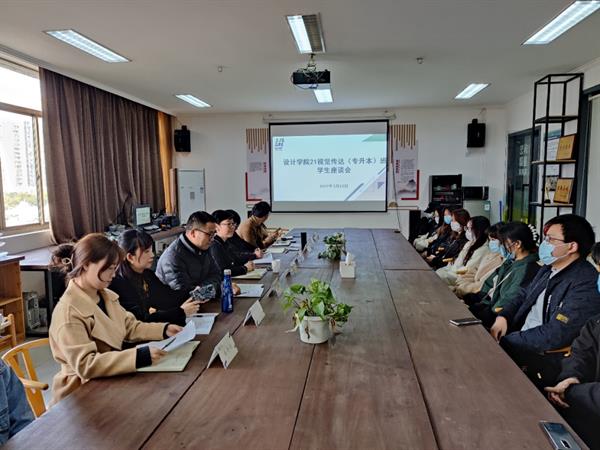 为扎实做好2021级(专升本)班学习教育,把握学生思想动态,了解学习生活情况,增强日常思想政治教育工作的针对性和实效性。设计学院于3月23日组织召开了21视觉传达(专升本)班学生座谈会。 设计学院党总支书记汪琳,常务副院长李昌国,党总支专职副书记顾才铭,原班主任叶峰泉(现手工艺学院副教授),广告艺术设计专业教研室主任、班主任商易文,全体辅导员及全体学生共同参加了本次座谈会。