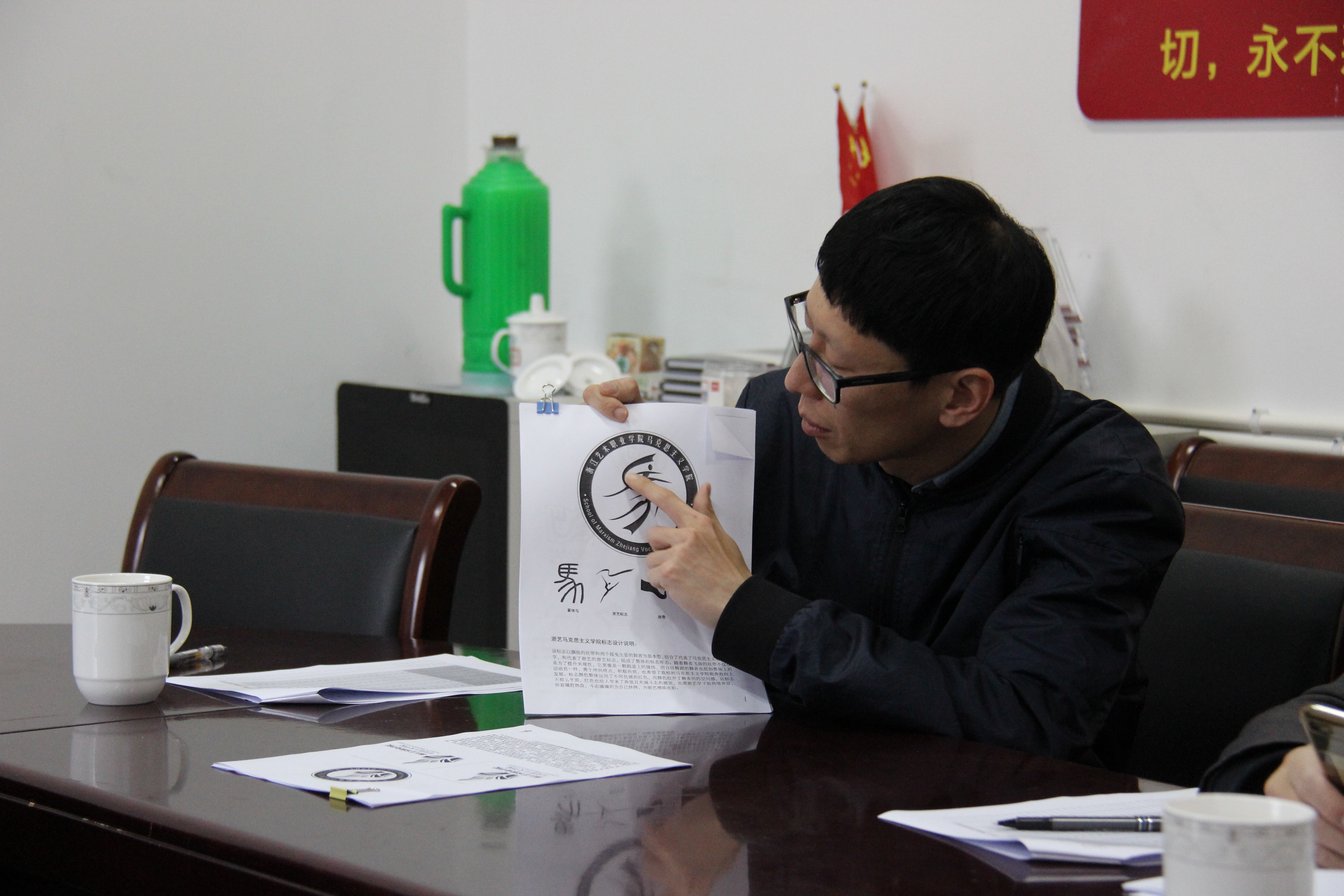 为树立浙江艺术职业学院马克思主义学院的品牌形象,展示学院特色、建设高品味的马院文化,增强广大在校学生对于马克思主义理论、中国特色社会主义理论体系的学习热情。历时2个半月的马克思主义学院院徽设计大赛于3月17日上午在学院13102会议室对入围作品进行了终评。校党委委员、宣传部(统战部)部长马向东莅临此次评审会议并担任评审会主评,手工艺学院副教授叶峰泉、设计学院教师商易文、马克思主义学院直属党支部书记、副院长陈毅、副院长胡卓群参加评审会议,评审会陈毅主持。