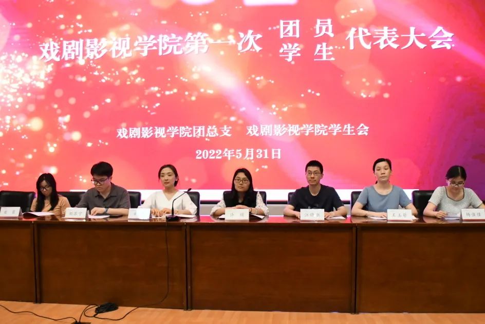 5月31日晚,戏剧影视学院第一次团员、学生代表大会在图信中心举行。校党委学工部副部长、校团委书记郑吟,戏剧影视学院党总支专职副书记许瑛出席本次大会,全院76名正式代表参加会议。会议由院学生团总支副书记徐赫男主持。