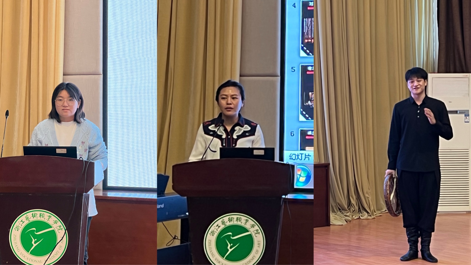 戏剧影视学院常务副主任 郑怡文(左上)、音乐学院副院长 潘骅(右上)