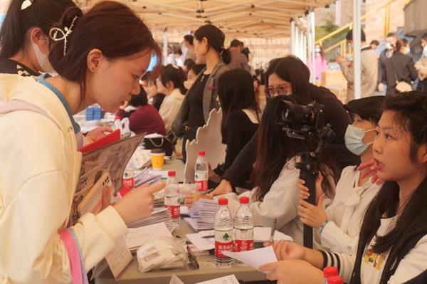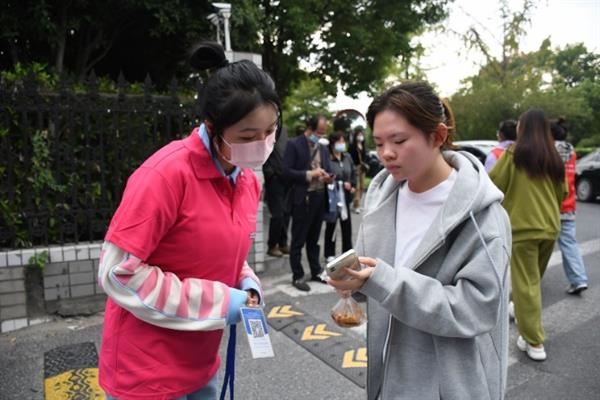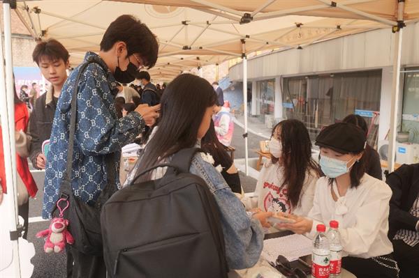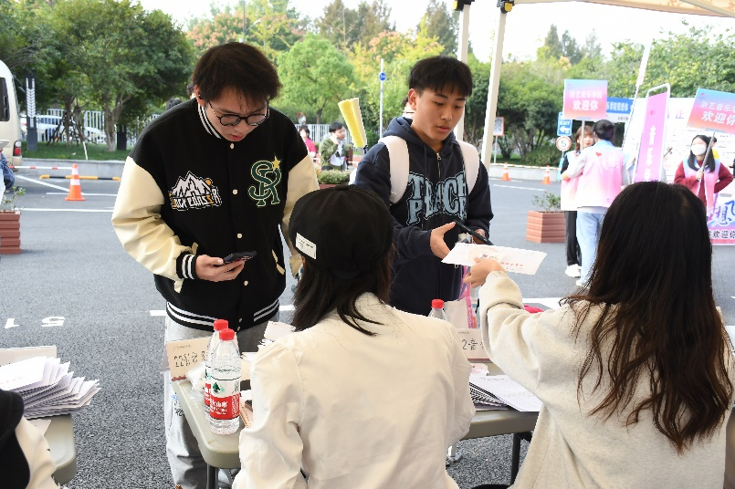 同学们前往“立志园”、“立业园”扫码办理入住手续,领取“新家”钥匙。