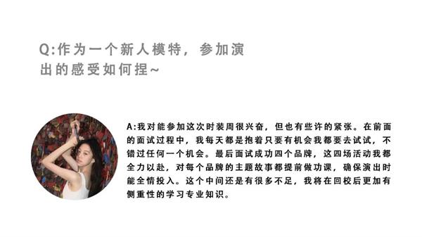 本季上海时装周共有5名浙艺戏影学子参演,共参演18场时装秀。