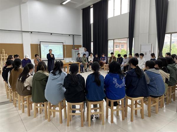 会后,在造型基础教研室主任沈玉佩的陪同下,家长们实地参观了专业绘画教室,深入了解附中美术的专业建设、人才培养特色、专业设备设施等情况,并在5531教室召开了新生家长交流会,依次对美术生的专业规划、艺术院校介绍、联考和校考、招生比例和报考方式、命题方向和考试集训等方面和家长做了详尽介绍,让家长对孩子的专业发展有了更清晰合理的规划。