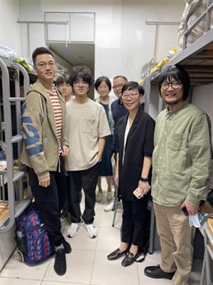 10月8日下午,设计学院领导班子走访寝室,看望新生。在走访中,与学生亲切交谈,了解新生的学习情况、思想动态,叮嘱新生在校期间合理安排学习和生活,努力提升自我。同学们也积极地向领导们问好,并主动与领导们分享了自己来学校后的感受和未来的发展规划。谈话在欢声笑语中进行,整个走访过程都洋溢着温馨融洽的气氛。
