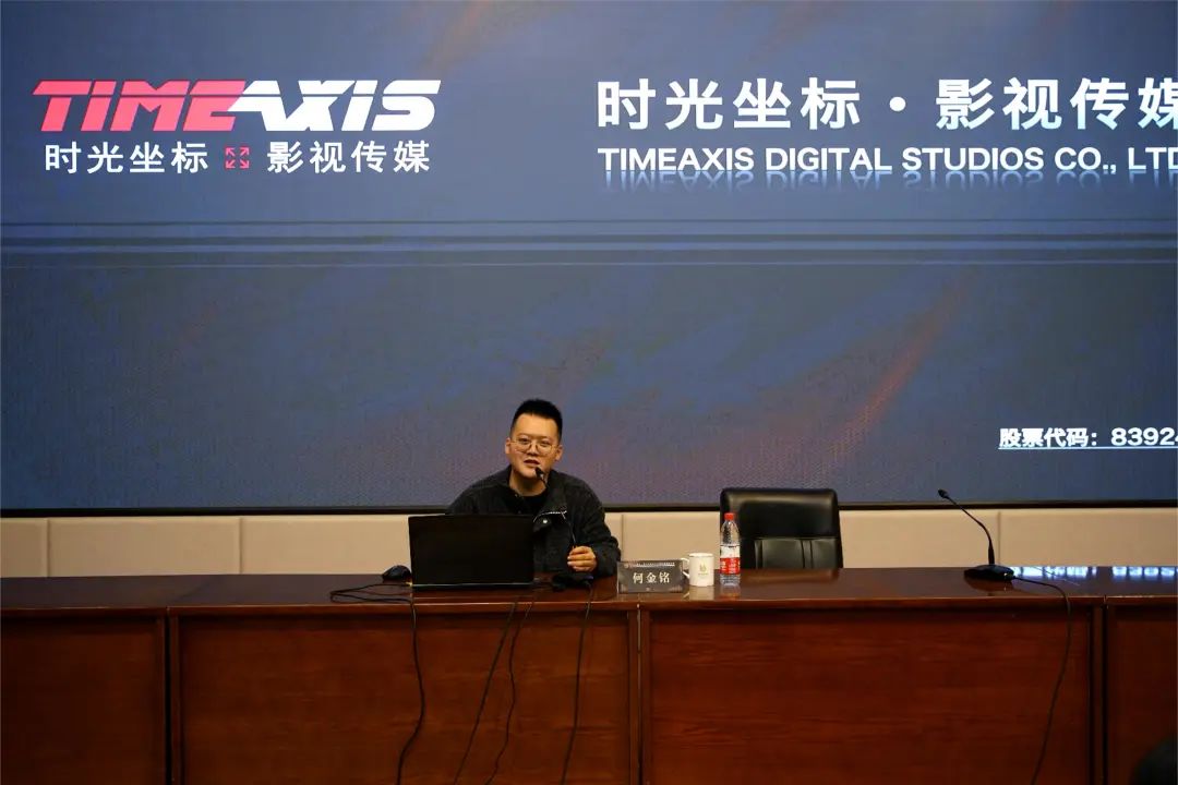 何金铭通过播放时光坐标影视传媒股份有限公司的介绍短片,使大家初步了解了“时光坐标”,通过呈现公司视效团队摄制的电影、电视剧、宣传片等优秀作品,强调特效与虚幻引擎技术在影像作品制作中的重要作用。