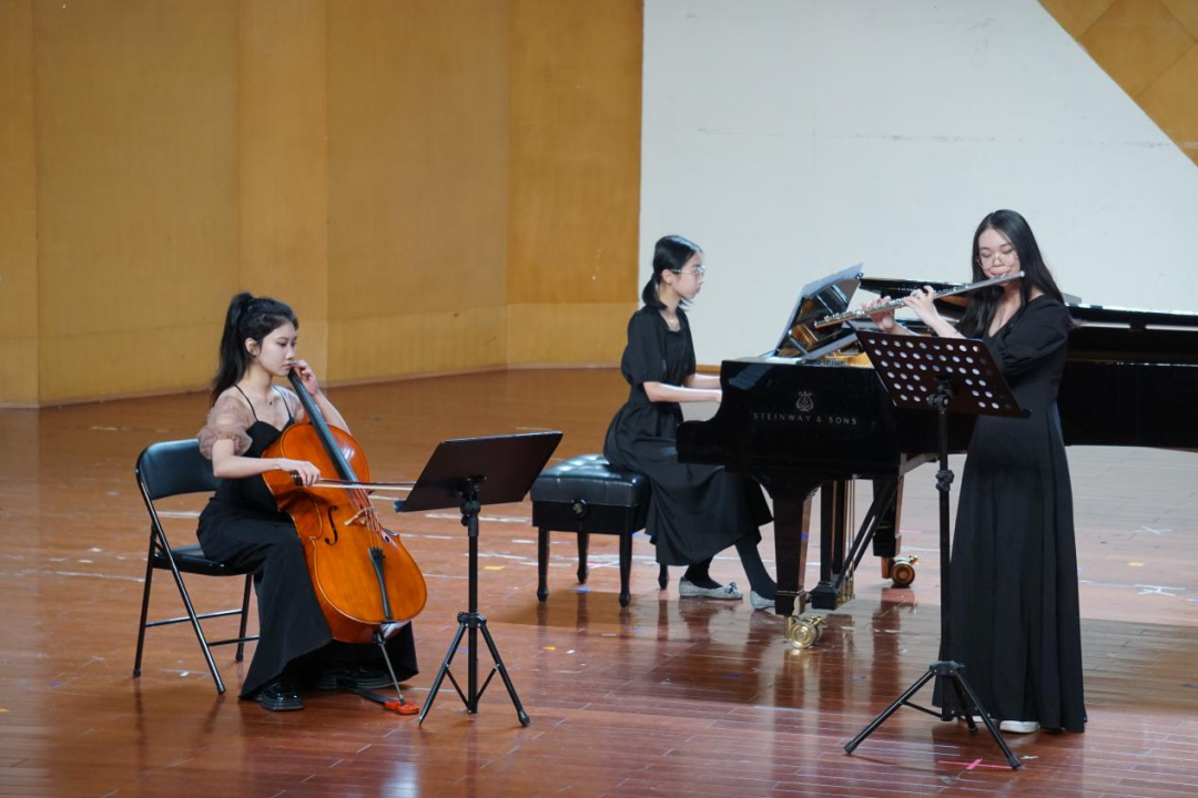 20小音乐王雅婷与同班钢琴学生陈百加、19管弦一贯班大提琴学生郑琪豫首先出场,共同演奏了一首C.P.E巴赫的《汉堡奏鸣曲》。乐曲舒缓悠扬,巴洛克时期的意境被浓郁的体现了出来。