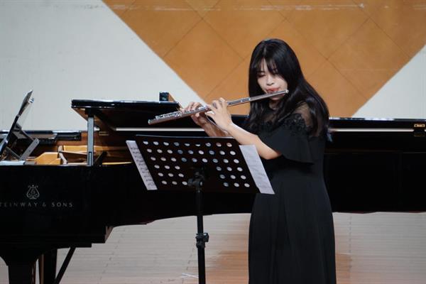 法国著名现代作曲家普朗克为长笛创作了一首奏鸣曲,是现代长笛作品的标杆,代表性极强,高音、快速吐音、气息的控制都是乐曲的难点。19管弦一贯班的卢奕含成功的演绎了这首高难度的作品,她娴熟、稳重的演奏赢得了热烈的掌声。