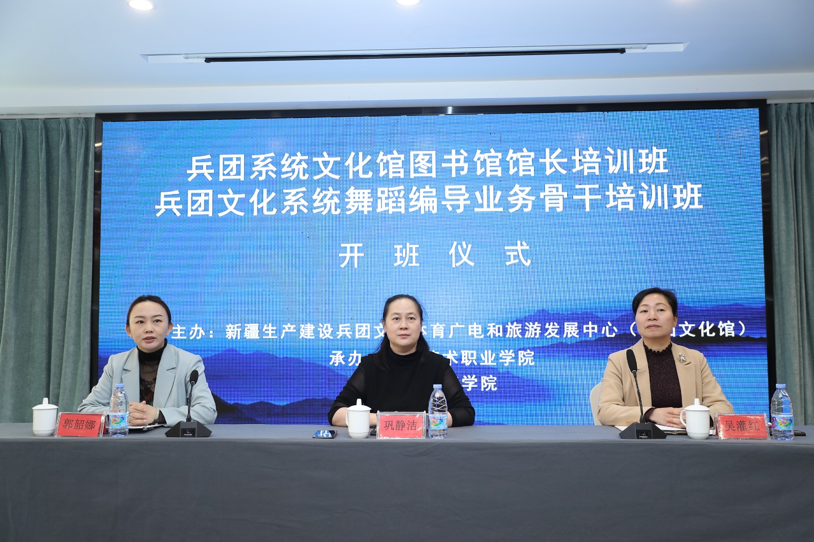 3月13日上午,新疆生产建设兵团文化馆图书馆馆长培训班、舞蹈业务骨干培训班在杭州开班。该培训班由新疆生产建设兵团文化体育广电和旅游发展中心(兵团文化馆)主办、浙江艺术职业学院承办。新疆生产建设兵团文化馆群文工作负责人、兵团舞蹈家协会副主席巩静洁,浙江艺术职业学院继续教育学院党支部书记、副院长吴灌红出席本次开班仪式。开班仪式由新疆生产建设兵团郭韶娜主持。培训将持续至3月17日,来自兵团文化系统共60位文化管理人才和文化专业技术骨干参加。