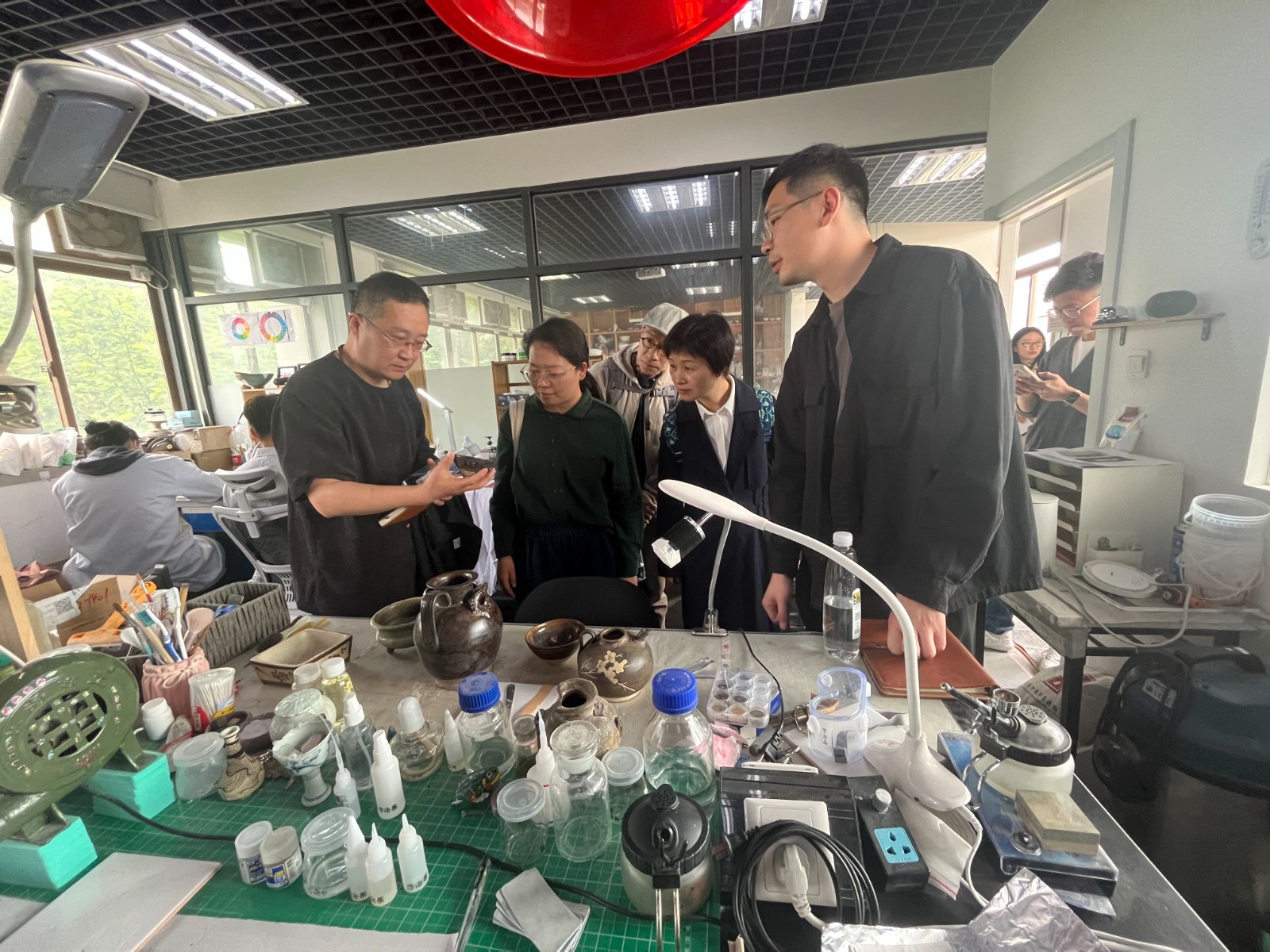 4月20日下午,黄杭娟一行考察调研苏州工艺美术职业技术学院手工艺术学院。在手工艺术学院院长赵罡带领下,参观了陶艺、漆艺、综合材料、珠宝首饰加工、宝玉石鉴定、玻璃工艺、刺绣、玉雕、核雕等传统技艺与现代技术融合的工艺实验室。参观结束,双方围绕专业师资、课程体系、实训室建设、招生就业、人才培育等方面进行了座谈交流。