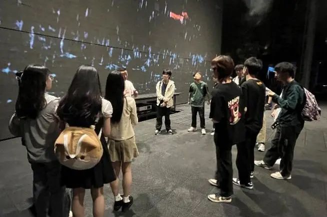 同学们走进演出《宋城千古情》的一号剧院,分成灯光、音响、舞台机械三个小组,轮流跟随剧场技术人员观摩《宋城千古情》灯光、音响及舞台机械设备的演示效果、操作原理,并动手体验。