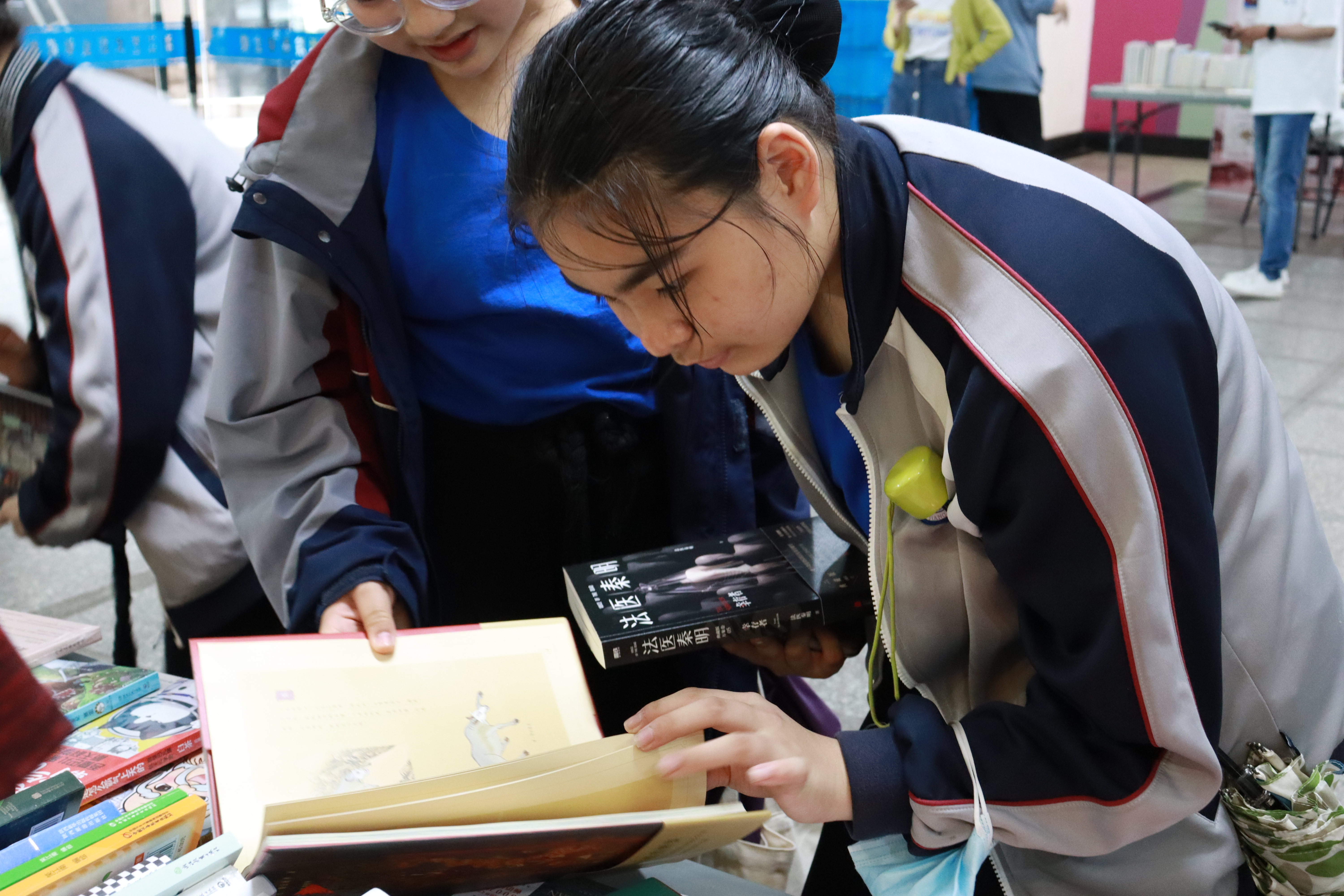 瓢泼大雨未能阻挡我校师生读书的热情。图书荐购活动吸引了众多师生前来,现场弥漫着浓郁的书香之气。师生们在展桌前驻足,拿起一本本书小心仔细翻阅,时而笑意盈盈,时而眉头紧锁,仿佛进入了一个别开生面的世界。