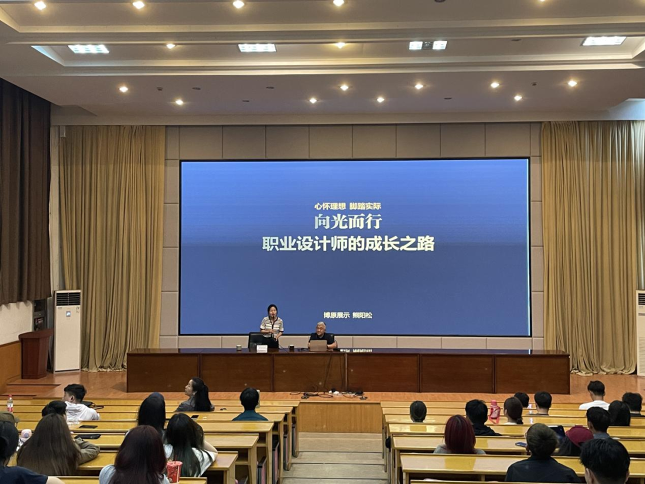 设计学院第三届“哲·艺”学术月通过专题讲座、专业研讨会、走访博物馆、校企合作签约等活动,进一步开阔师生知识眼界,营造良好学术氛围,推动专业建设。5月6日,设计学院邀请了杭州博原装饰设计有限公司艺术总监熊阳松来学校作《心怀理想 脚踏实地 向光而行 职业设计师的成长之路》专题讲座,环境设计专业教研室全体教师、2021级环境艺术设计班、2022级环境艺术设计2班同学参加了此次讲座。