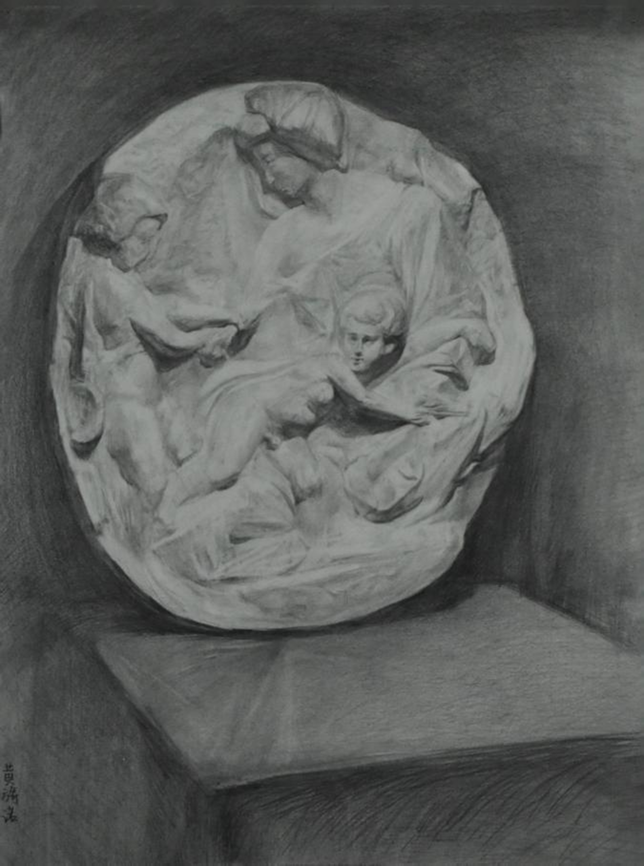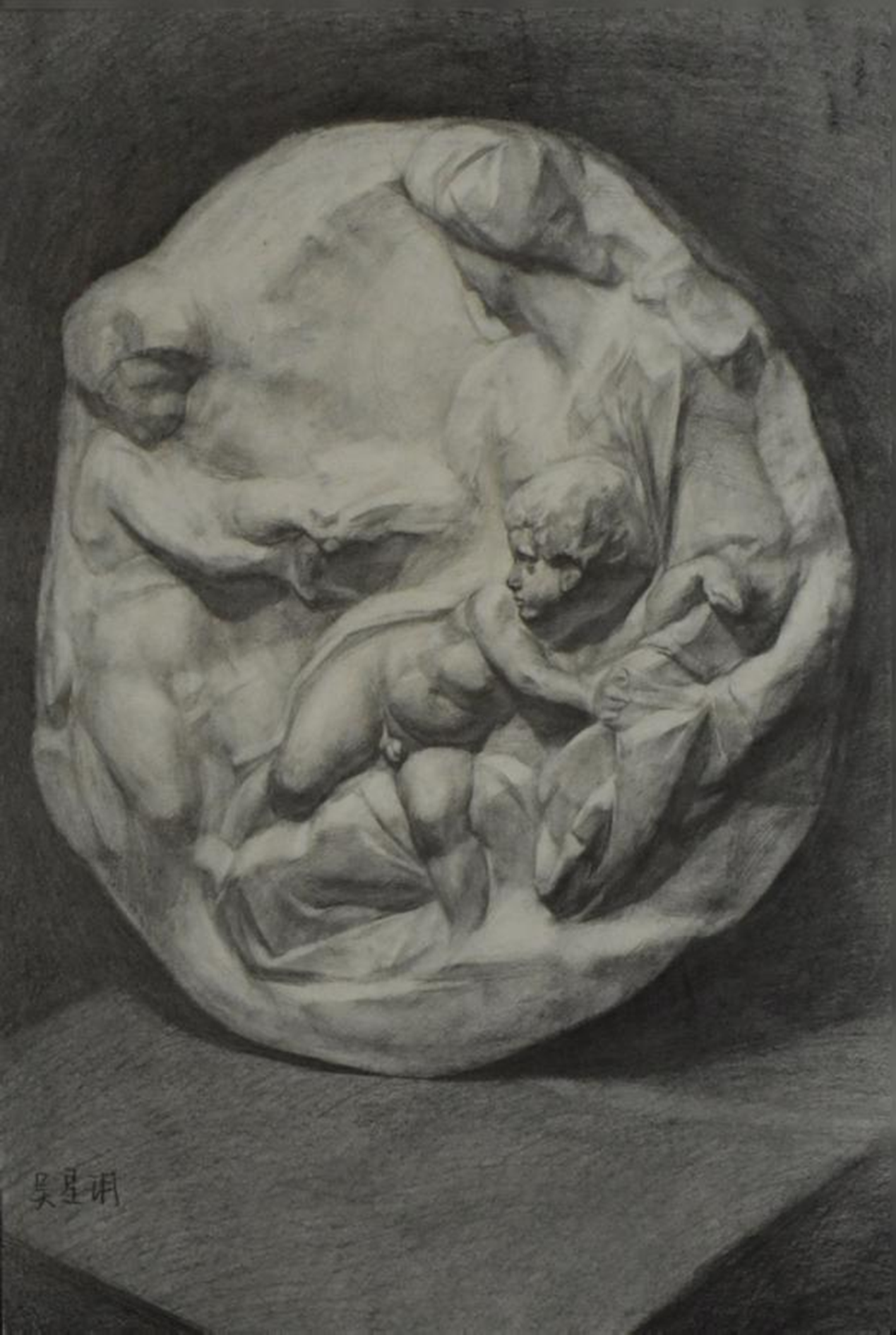 学生课堂石膏写生作品