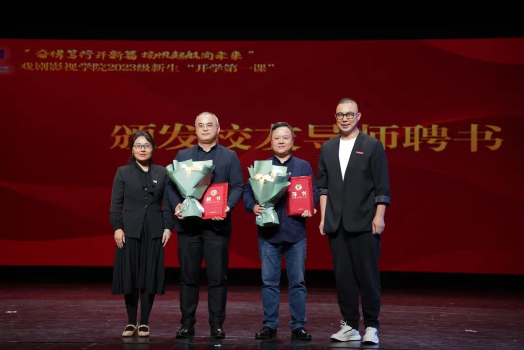 现场举行“校友导师”聘任仪式,那刚与许瑛为1995级电子声像专业毕业生,现任华汇音响顾问有限公司总裁陶建新和1996级影视表演专业毕业生,现任浙江演艺集团副总经理、浙江曲艺杂技总团总经理、国家一级演出监督陈聪颁发聘书。“校友导师”将与新生同行,将自身的奋斗故事融入育人过程,与学院协同构建育人平台,为新生成长和未来职业发展赋能,奔赴卓越,推动学院的建设与发展。