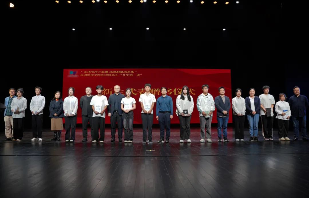 现场举行新生代表赠书仪式。在开学周,戏剧影视学院有11位生日的新生,教研室主任亲自选择专业书籍并在扉页上写下寄语,期待新生们不断求索新知,增进学养。