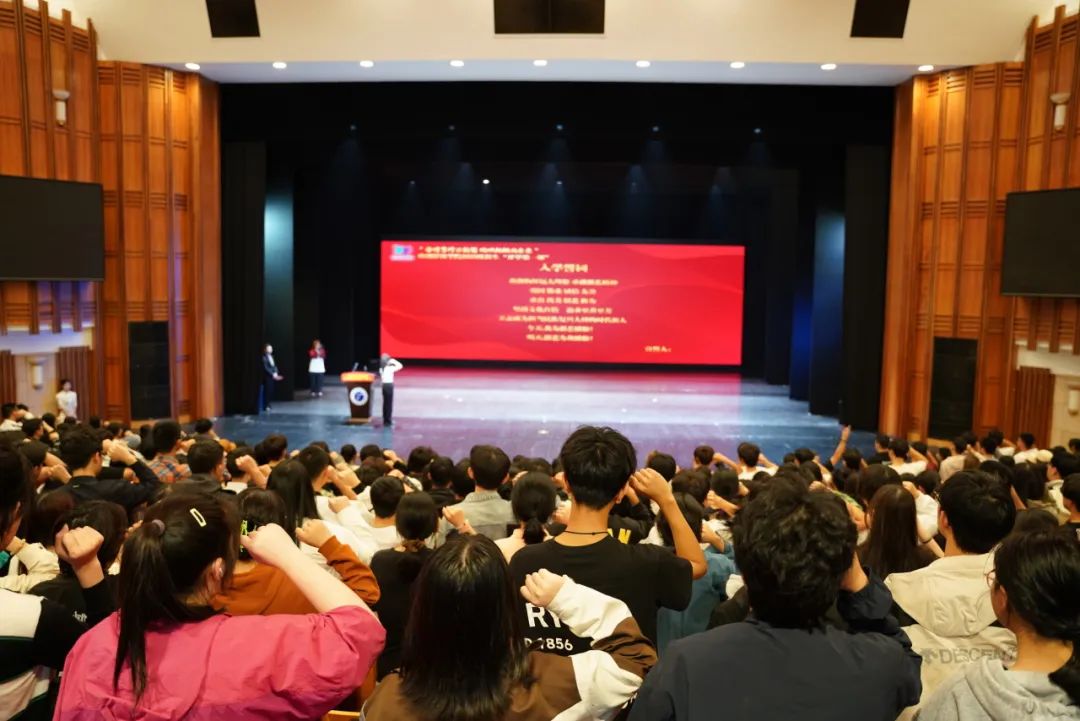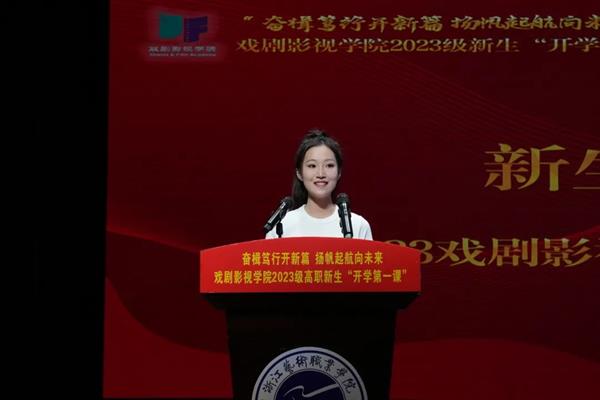 全体新生进行庄重的入学宣誓,表达了将坚持文化自信,做担当时代使命的创作者,做心怀家国的新时代影视人,在戏剧影视学院铸就梦想、成就自我。今天我以浙艺为荣,明天浙艺以我为傲。