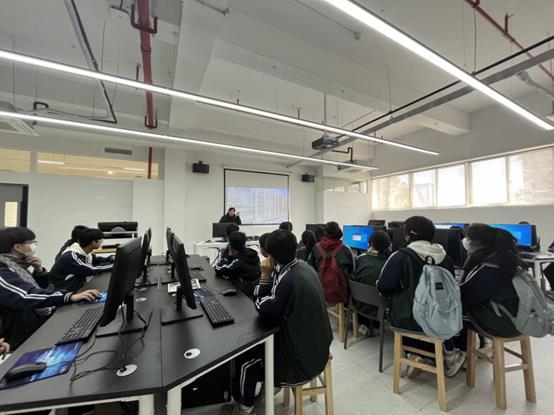 何佳玮和动漫设计教研室主任贾娜娜对杭州市闲林职业高级中学来访表示欢迎,并带领师生们参观了学院实训室等教学场所。