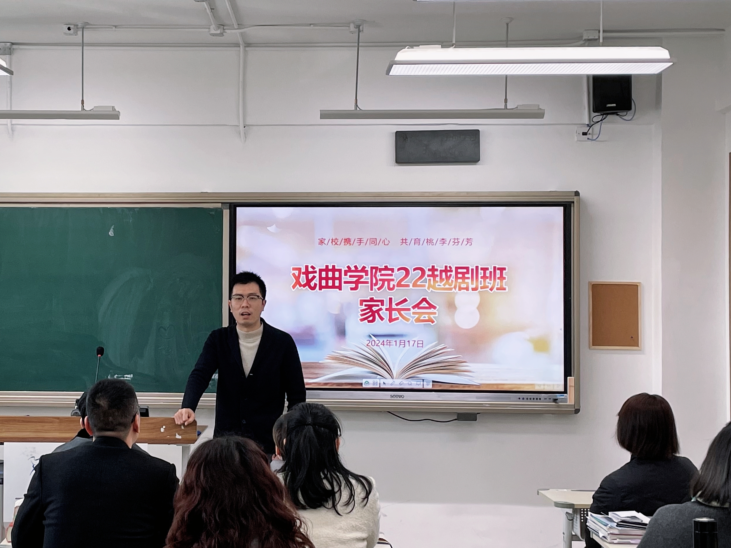 各班精心组织了家长看考,建立院团、家校多维度期末考评机制,并召开了家长会,进一步增进家校联动。戏曲学院班子领导、专任教师、班主任、辅导员与家长就学生日常学习状态、纪律卫生等方面开展面对面沟通,携手共促学生成长,同心共育时代新人。附中校长郑园全、学工部副部长顾斌、基础教学部教学主管王玉簪以及戏曲学院党政班子成员参加22越剧班家长见面会。会上就家长所关注的学生综合表现、学业成绩、专业发展、升学规划等情况分别进行了详细的分析和针对性的指导。