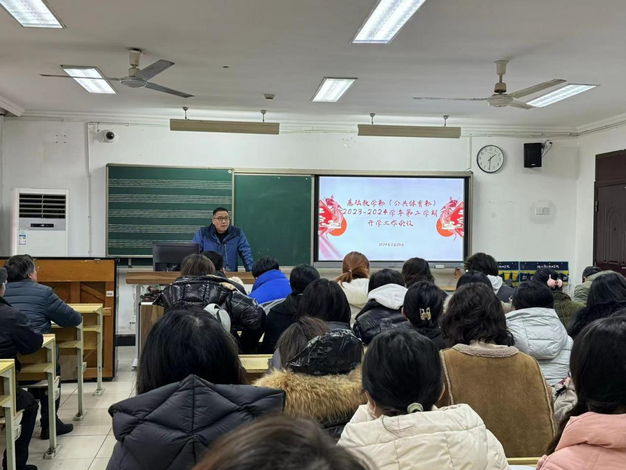 岁序常易,华章日新。为更好地统筹和安排新学期各项工作,确保教育教学工作有序、高效推进,2月23日,基础教学部(公共体育部)召开新学期教职工大会,安排部署开学各项工作,会议由党总支副书记、副主任顾才铭主持。