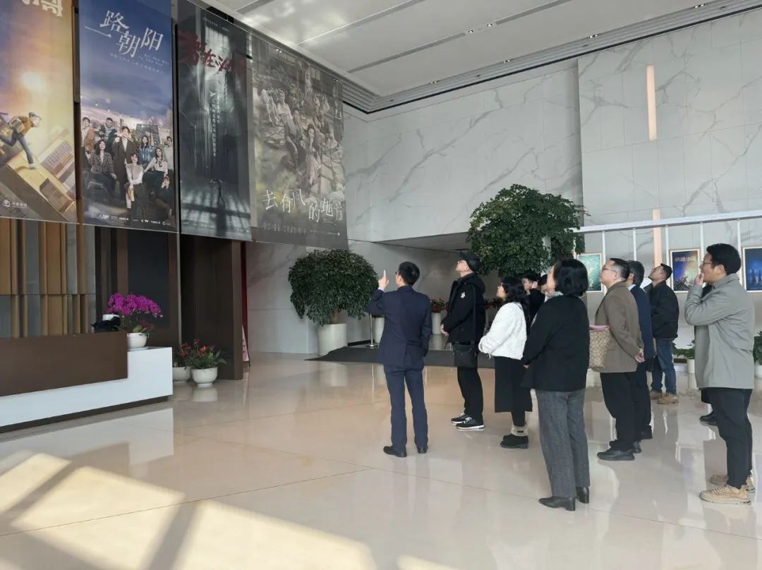 在大策投资集团总裁、华策影视集团董事夏欣才,华策影视技工学校执行校长滕朝晖,华策影视技工学校校长校长助理刘和斌、刘博,华策影视技工学校教务处负责人曹力心,华策投资集团综合管理总监方宜立的陪同下,戏剧影视学院一行先后参观了浙江华策影视集团总部、华流出海展厅。