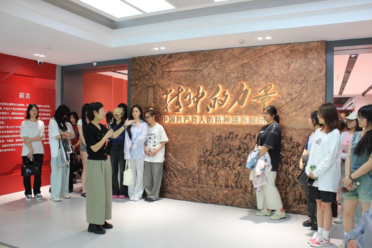 “党的百年历史,是一部不懈奋斗史、理论创新史、为民造福史、自我革命史,也是一部精神锻造史。”王筱芽老师以中国共产党人的精神谱系为线索,从建党的“开天辟地”,到新中国的“改天换地”,到改革开放的“翻天覆地”,再到新时代的“经天纬地”,从理论、故事、人物、精神等多个角度解读了中国共产党建党、立党、兴党、强党的历史链条。同学们在场馆跟随着王筱芽老师的讲解,沉浸式地在可视、可听、可触、可感、可互动的丰富体验中探寻历史的细节,解读现实的意义。