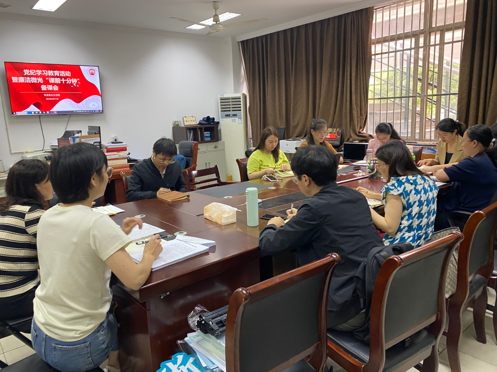 为深入学习贯彻习近平总书记关于党纪学习教育的重要讲话和重要指示精神,按照《中共浙江艺术职业学院委员会党纪学习教育工作方案》工作部署,6月6日和11日,马克思主义学院召开党纪学习教育暨“廉洁微光·课前十分钟”廉洁教育备课会,探讨如何更好地将党纪学习教育融入教学与工作全过程,马克思主义学院全体教职工参会。