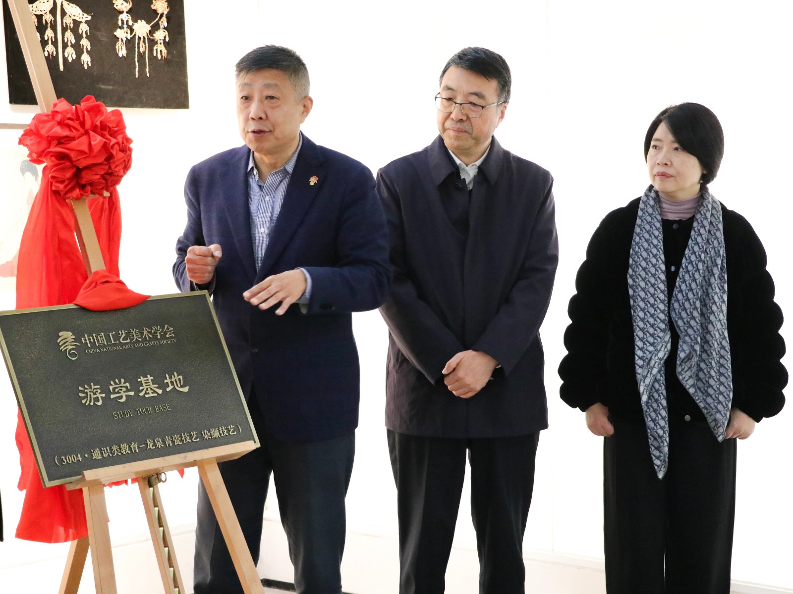 随后,才大颖与施俊天为首批中国游学基地揭牌,标志着我校在工艺美术教育教学、实践育人方面迈出了关键的一大步。这不仅是对学校长期以来教育成果的高度认可,更为专业发展提供了更为广阔的空间。