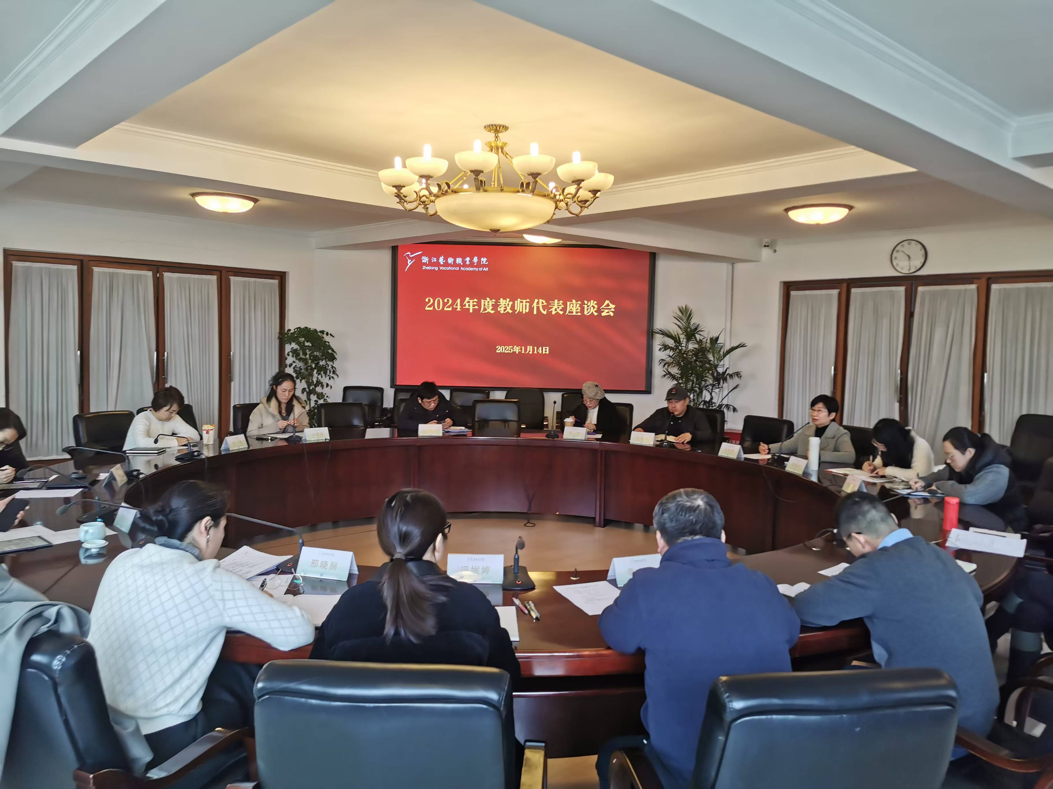 1月14日,学校2024年度教师代表座谈会在行政楼三楼大会议室召开。校长、党委副书记施俊天参加座谈并讲话。教师代表、相关职能部门负责人参加座谈会。会议由党委委员、副校长刘杨主持。