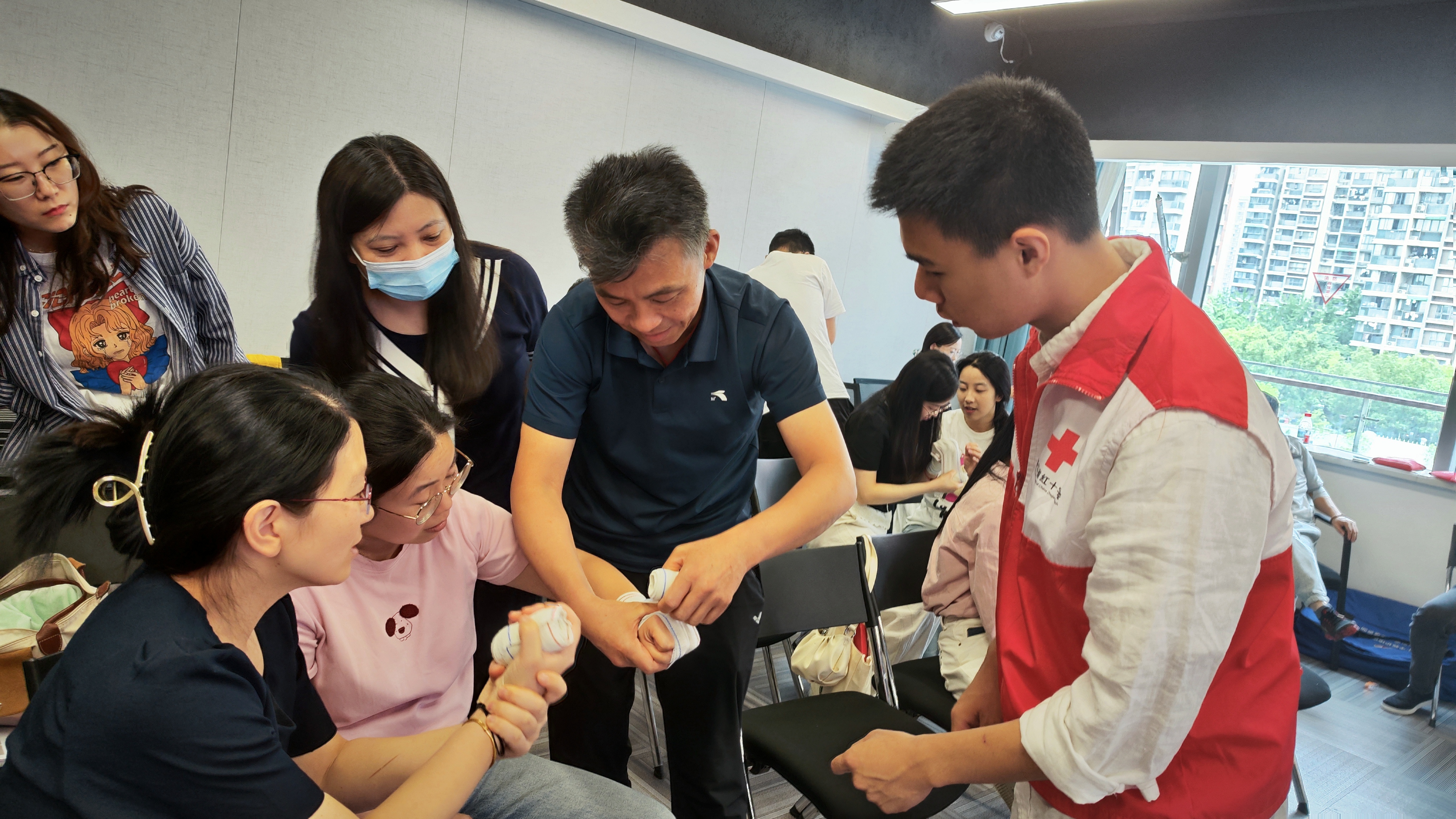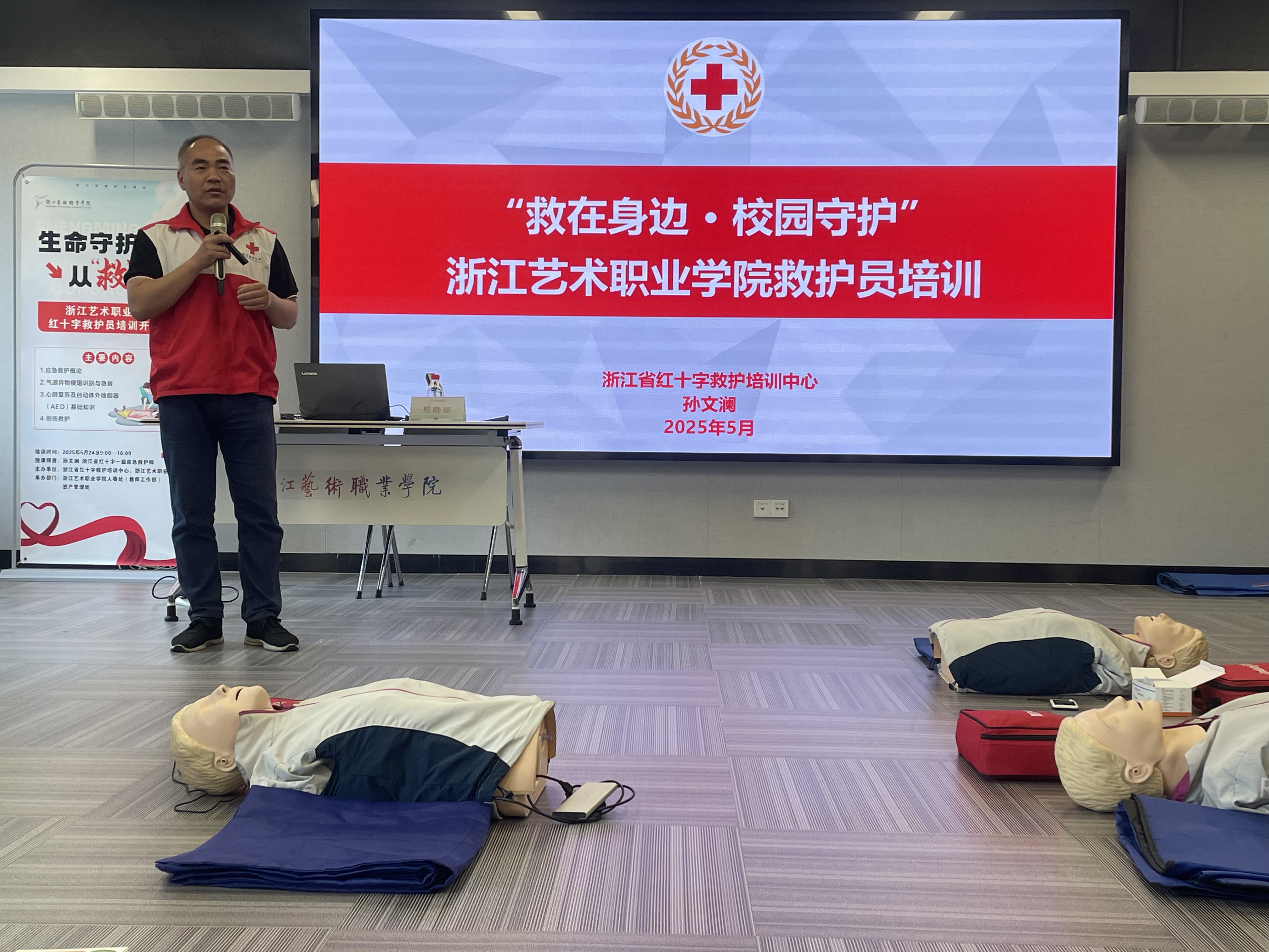 5月24日,校人事处(教师工作部)联合资产管理处举办2025年第一期红十字救护员培训,校党委委员﹑纪委书记沈军甫以及关联部门的重点人员参加了本次培训。