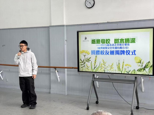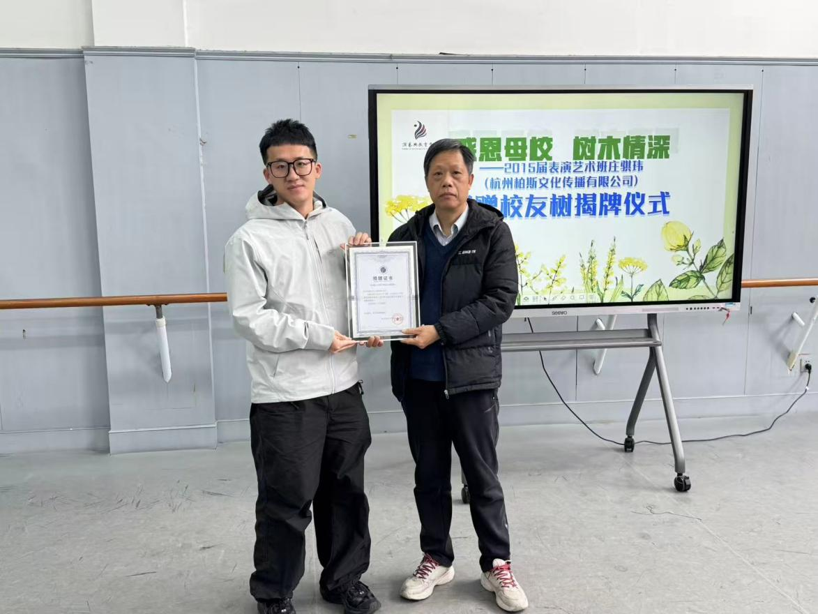 今天,这棵树有了名字,叫“校友树”;有了故事,叫“感恩”;有了生命,叫“传承”。它将扎根于此,见证四季轮转,陪伴一届又一届学子晨读暮省。此次捐赠活动不仅凝聚了校友对母校的深厚情谊,更生动诠释了浙艺精神薪火相传、生生不息的力量。未来,演教学院将继续凝聚校友力量,深化校友情谊,让一棵棵校友树在校园茁壮成长,成为见证学校发展、承载校友情怀的靓丽风景;也期待更多校友常“回家”看看,与母校同心同行、共筑新程!