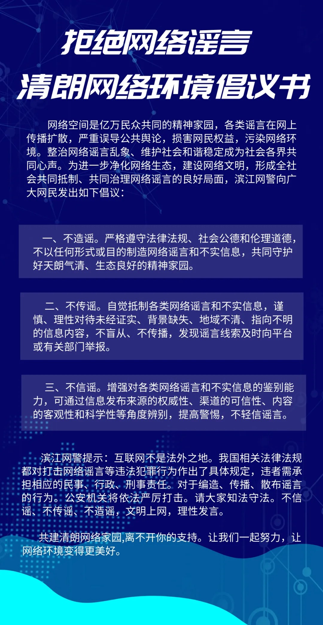 滨江公安拒绝网络谣言清朗网络环境倡议书
