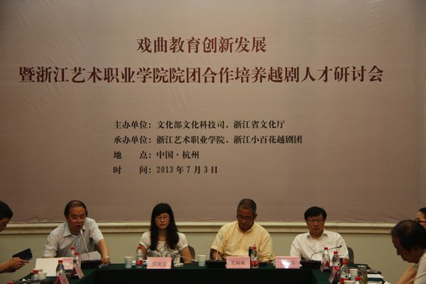 如何培养德艺双馨的艺术人才,什么才是成功的办学方式,怎样才能将艺术与职业无缝对接,7月3日,在浙江艺术职业学院举行的戏曲教育创新发展暨浙江艺术职业学院院团合作培养越剧人才研讨会得到回答。此次研讨会由文化部文化科技司、浙江省文化厅主办,浙江艺术职业学院、浙江小百花越剧团承办。文化部文化科技司、浙江省文化厅、浙江小百花越剧团等单位领导和来自上海戏剧学院、北京戏曲艺术职业学院、四川艺术职业学院、福建艺术职业学院、安徽艺术职业学院、湖南艺术职业学院等10多所艺术院校的30多位专家学者参加研讨会,系统而全面地论述院团合作培养戏曲人才的优势,展望中国戏曲教育未来发展前景。