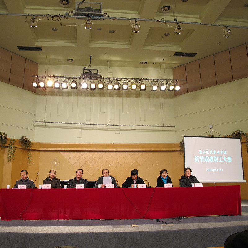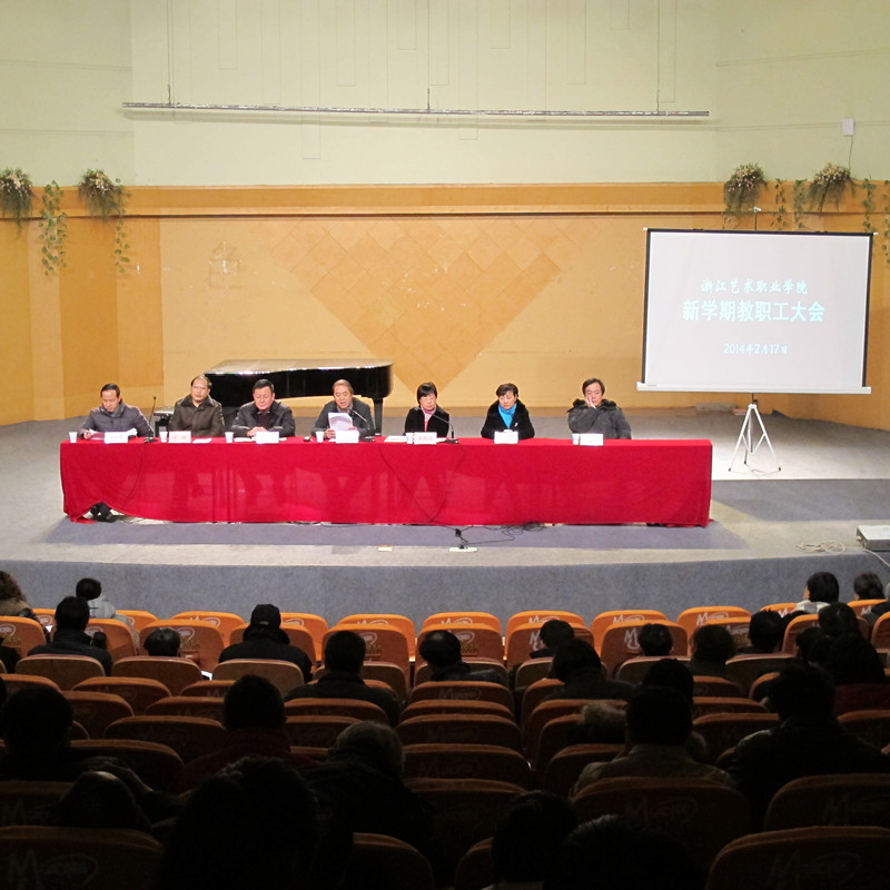 2月17日下午,浙江艺术职业学院在音乐厅召开新学期教职工大会,学院党政领子班子成员、全院教职工出席会议。党委书记林国荣作2013年度工作总结和2014年度工作部署。党委副书记、副院长朱海闵主持大会。
