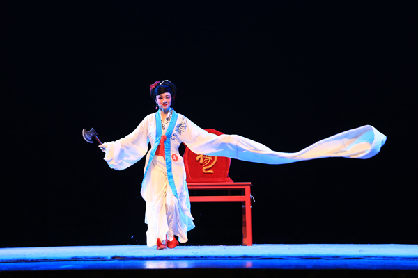戏曲表演比赛同样精彩纷呈,吸引了众多师生观看。比赛分为“地方戏”组与“京昆”组。分两轮进行,第一轮每位选手进行“剧目表演”,自选本剧种本行当剧目片段一个。选手们年龄虽小,唱功、身段却非常了得,《蝴蝶梦·劈棺》《僧尼会》《盗仙草》等经典唱段惊艳亮相舞台,有滑稽的丑角表演,也有翻滚的打斗,令观众大开眼界。“专业知识”测试考察选手的戏曲史论专业知识,由选手现场随机抽取两道题目进行回答。经过第一轮激烈角逐,有10名选手进入第二轮“基本功法”比赛。第二轮比赛考察选手的“唱、念、坐、打”戏曲表演基本功的专业水平和表现能力。选手们亮出精彩绝活,展示扎实的专业素质,传递出戏曲艺术的精妙。经过两轮激烈比拼,金华艺术学校的张莹、嵊州越剧艺术学校的邢景茜、金华艺术学校的楼依婷分获“地方戏”组前三名,浙江艺术学校的吴心怡、黄翌 、阮登越包揽“京昆”组前三名。