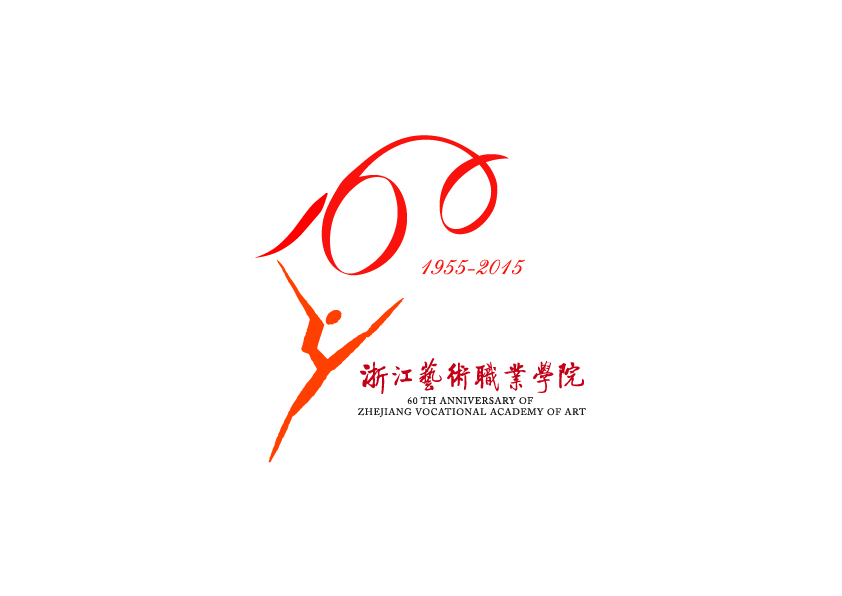 浙艺院60周年校庆标识图案由飞腾跳跃的舞者和飘扬律动的彩带构成,巧妙融入了汉字“艺”和“60”元素,以喜庆的红色、橙色为主调。设计者通过提炼创新图形,挖掘校庆的氛围和艺术院校的办学特点作元素造型,突出学院名师荟萃、人才辈出、充满活力和希望的办学成就,展现学院用艺术教育演绎“求真 尚美 精艺 修为”校训精神的梦想与追求,描绘广大师生对学院美好明天的信心和愿景,使校庆标识延伸出新的理念和精神。