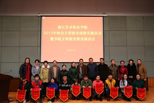 17日晚,2015年特色文明寝室创建实践活动暨学院文明寝室创建推进会在图信中心报告厅举行。院党委副书记黄杭娟,相关职能部门负责人、各系党总支书记担任评委,150多名学生代表观看候选寝室的现场展示评比。