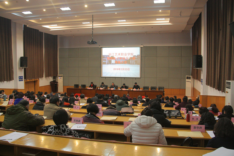 2月23日上午,浙江艺术职业学院在学院图书信息中心报告厅召开学院领导班子及领导干部考核大会。省文化厅党组成员、副厅长杨越光、省委宣传部干部处主任科员金鑫、省文化厅人事处调研员杜毓英,学院党政领导班子成员、中层处级干部、副高以上职称人员、民主党派负责人、教代会、职代会执委会成员、近三年退休的院领导等参加会议。会议由院党委书记朱海闵主持。
