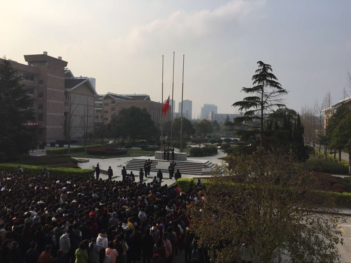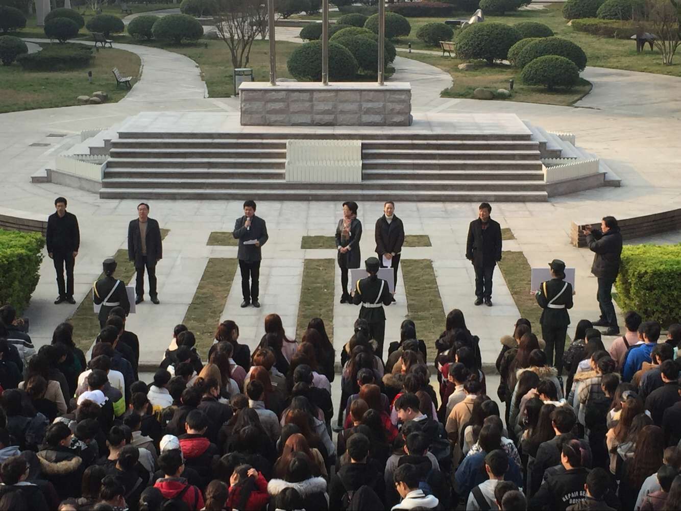 3月14日,学院在中心广场举行本学期第一次升旗仪式。院长张建国,院学生处负责人,各系党总支、学生党支部、团总支负责人和800余名学生代表参加仪式。