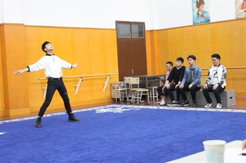 戏剧系考场中考生在两旁正襟端坐,轮到叫号时马上进入状态,激情洋溢地朗诵,身姿优美地起舞,他们要在表演、语言、形体和才艺展示中呈现出自己最好的状态。戏剧影视表演专业,有一个现场抽题环节,需要五位素不相识的考生合作表演,既考验考生的即兴原创能力,又考验他们的角色理解和团队配合。短短时间里考生们就排好了作品,很难让人察觉他们之前互不相识。想学表演的考生就是这么活跃自信。