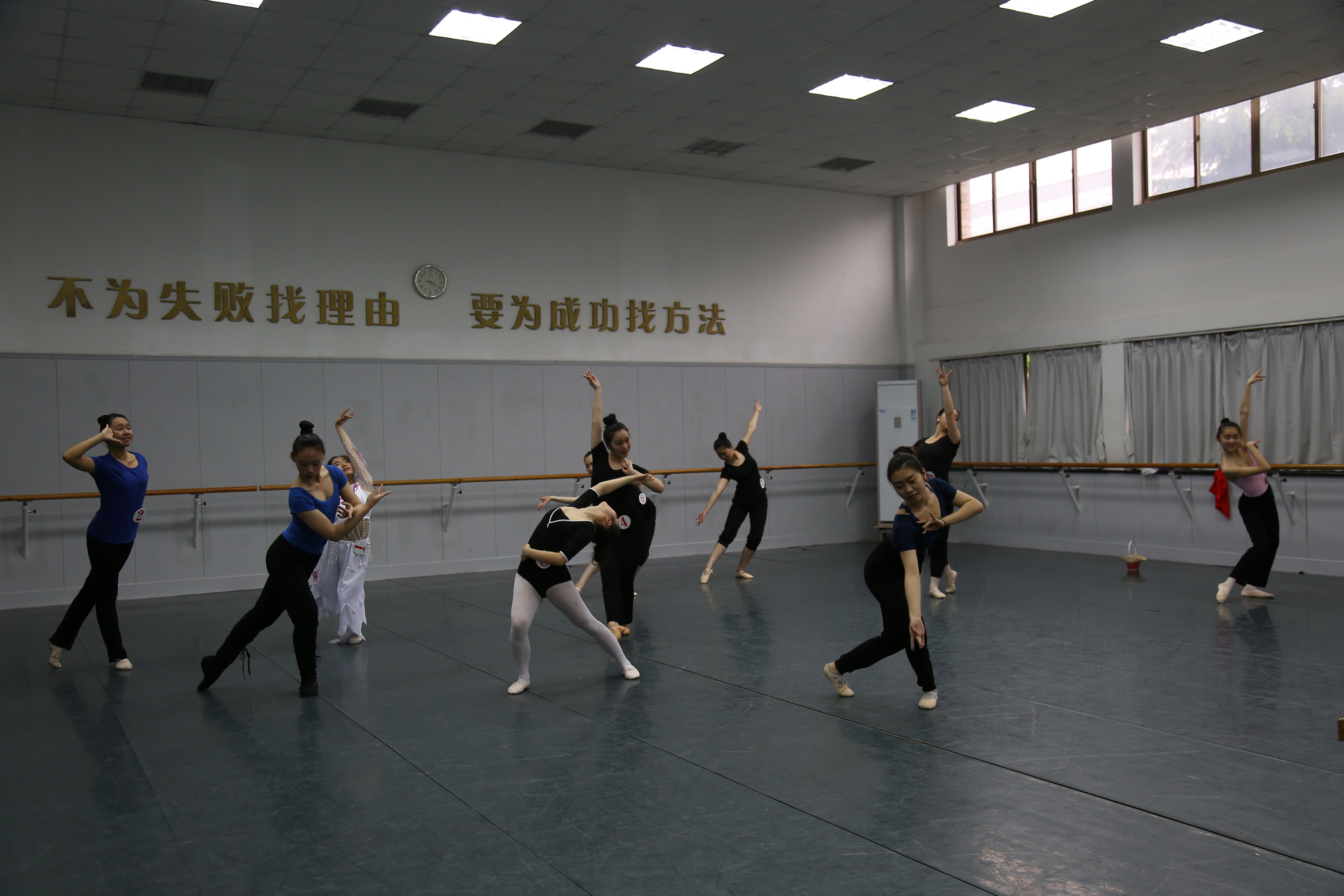 舞蹈系宽敞的候考厅内,许多身穿基训服的考生都在热身,笔直的一字马他们做起来轻而易举,女孩子头发都收拾得很利落,清一色包子头,身材都匀称苗条,面容清纯朝气,让人眼前一亮。考场也很见功夫,上来就是一字马、跳、转、翻等技巧考察。每个人还有一段自选舞蹈表演,有人演绎对镜贴花黄的古典女子,有人演绎海底一天到晚游泳的鱼,甚至有人穿花盆底演宫廷小主……构思都很巧妙。