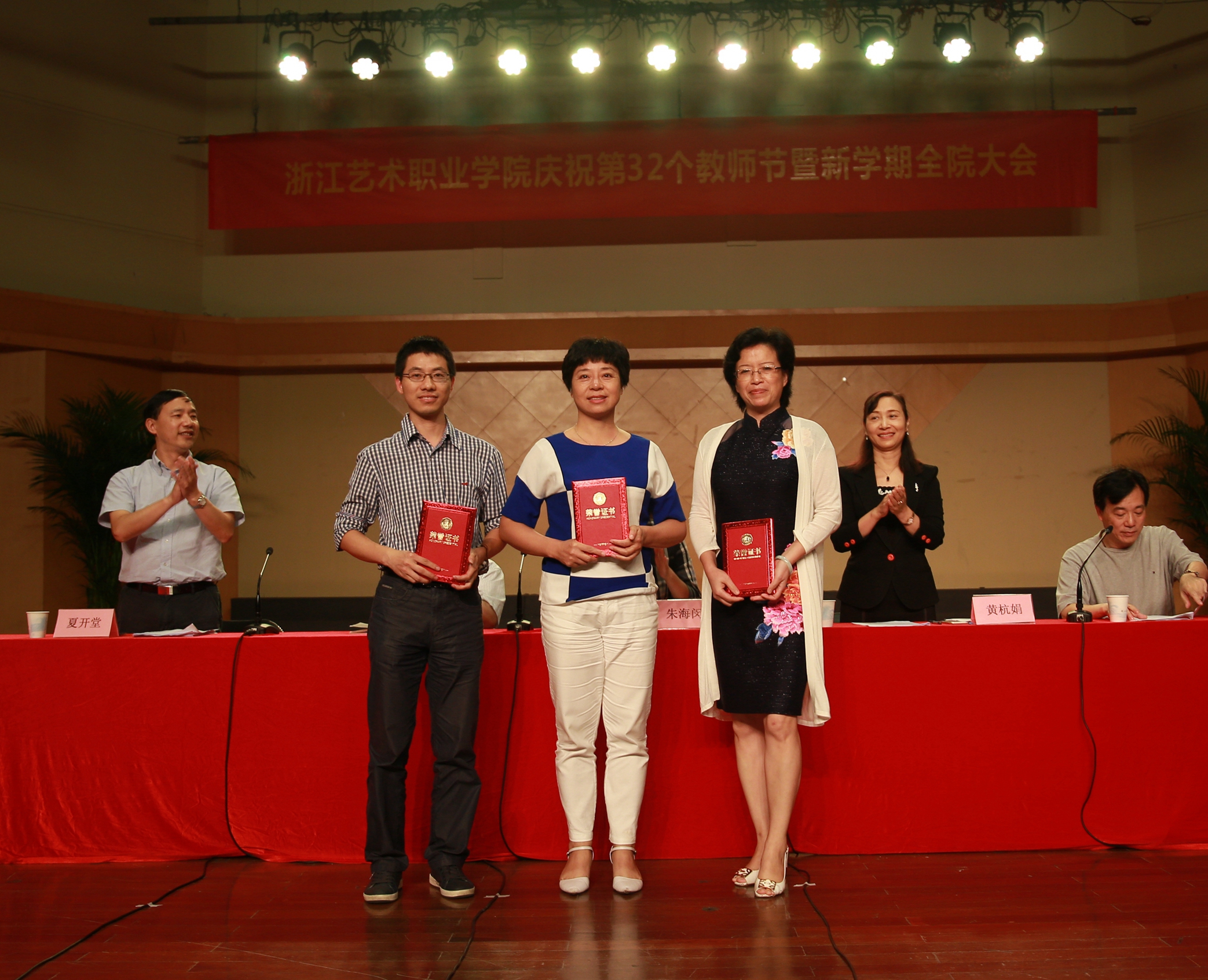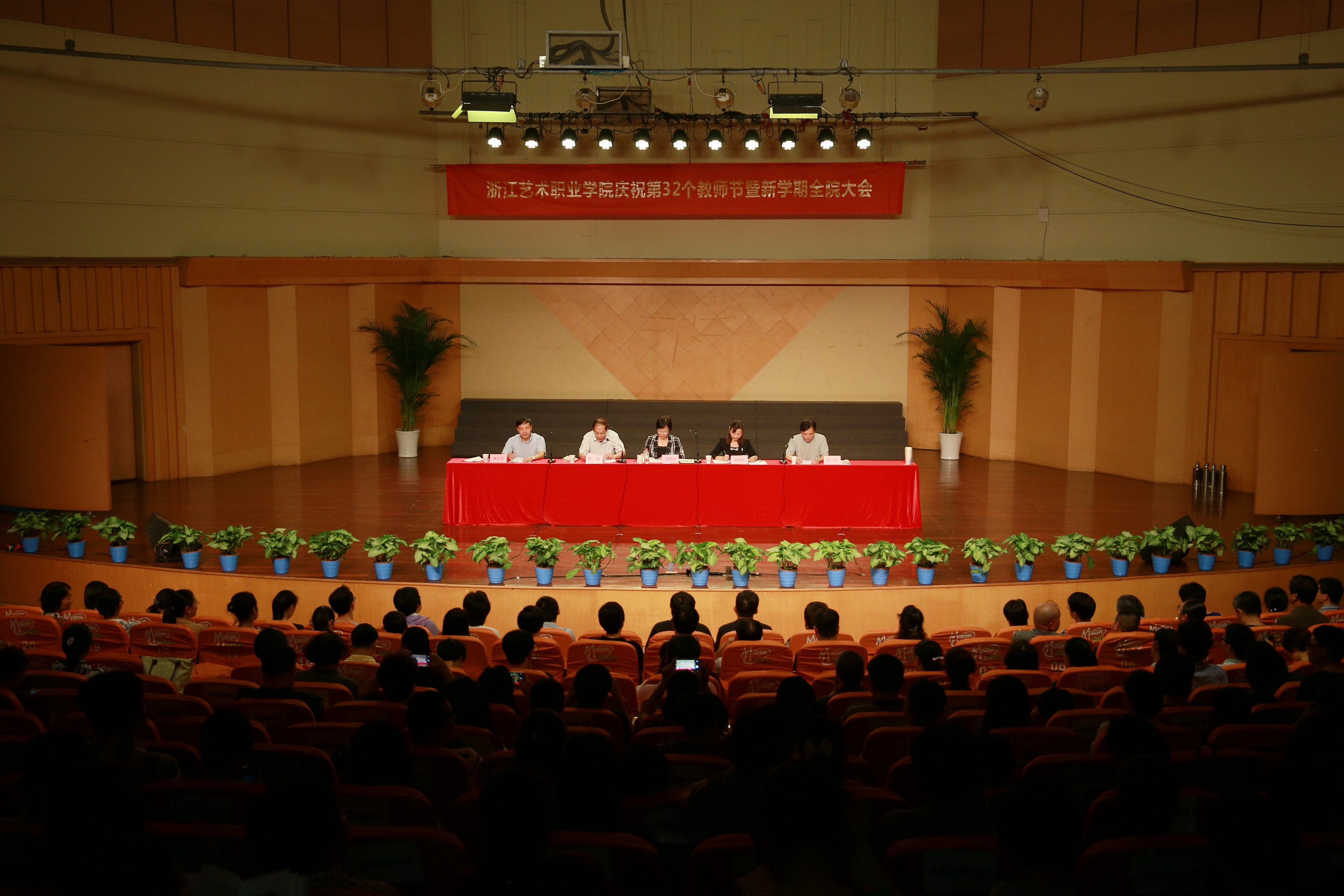 9月29日下午,浙江艺术职业学院庆祝第32个教师节暨新学期全院大会在音乐厅举行。党委书记朱海闵,院长黄杭娟,党委委员、副院长章轲,党委委员、副院长沈恒,党委委员、纪委书记夏开堂和全院教职工出席大会。会议由沈恒主持。