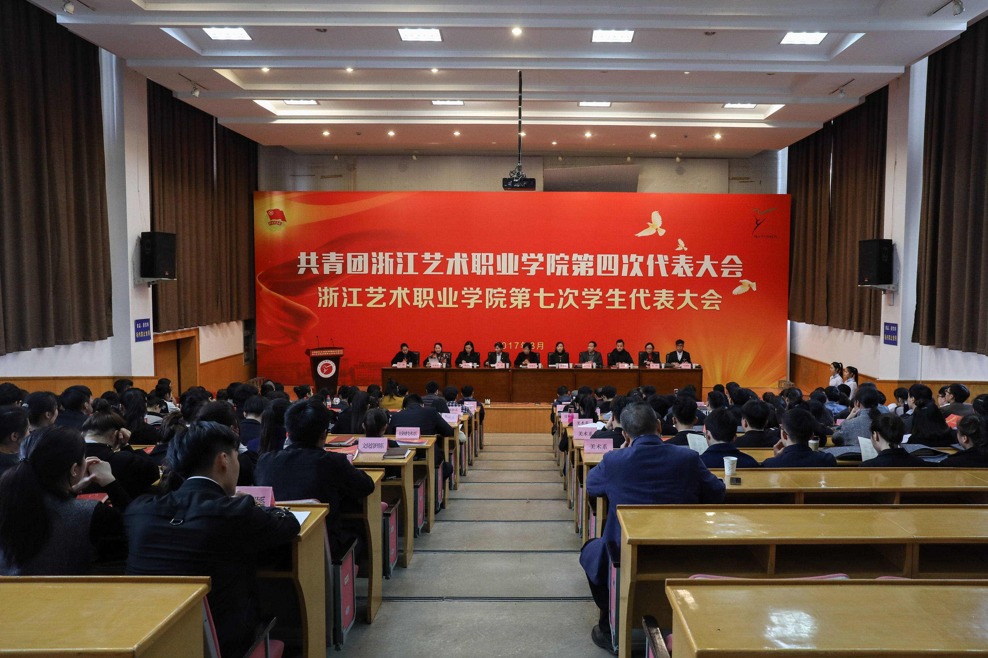 3月15日,共青团浙江艺术职业学院第四次代表大会、第七次学生代表大会在学院图信中心报告厅隆重召开。会议听取并审议了共青团浙江艺术职业学院第三届委员会、第六届学生委员会工作报告,选举出由13人组成的共青团浙江艺术职业学院第四届委员会、由15人组成的第七届学生委员会,郑吟当选为共青团浙江艺术职业学院第四届委员会书记,黄思远、沈洁(学生)为副书记。
