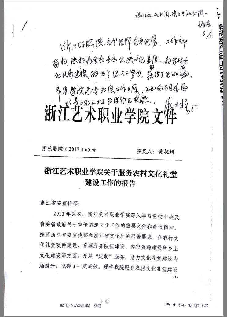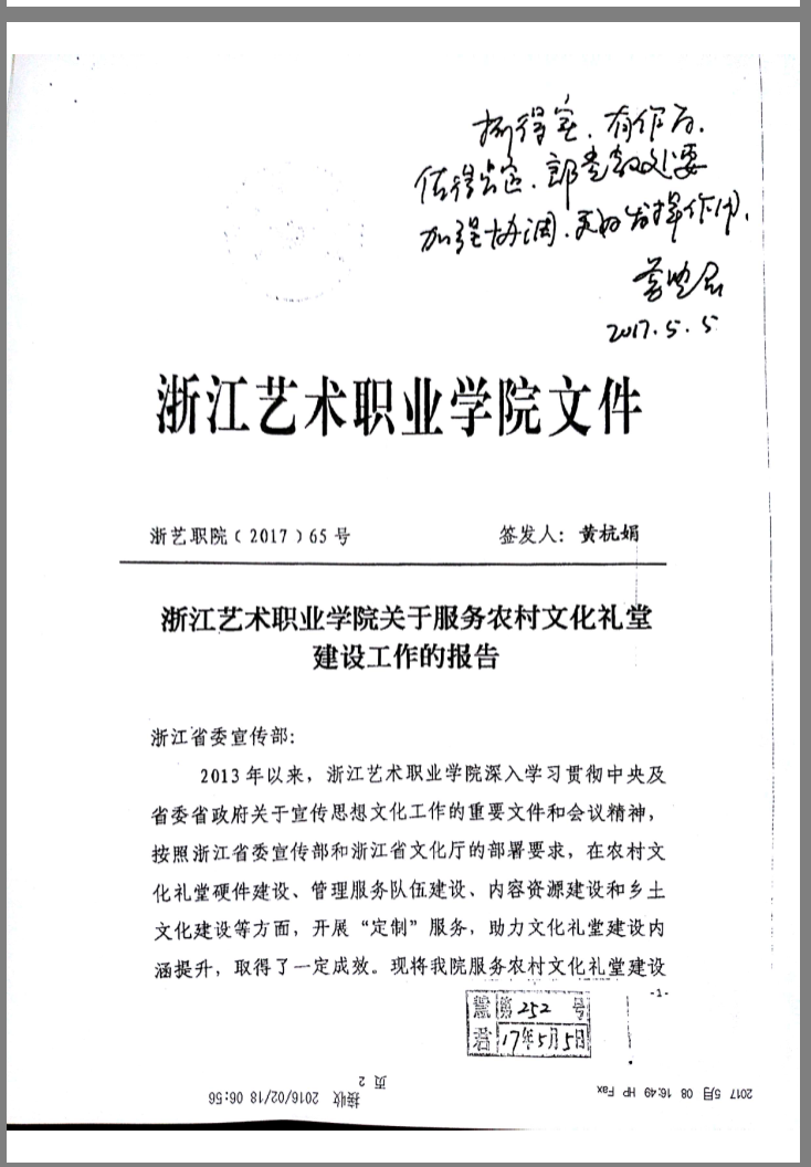 近日,中共浙江省委宣传部领导对浙江艺术职业学院“关于服务农村文化礼堂建设工作的报告”作出批示。省委常委、宣传部长葛慧君批示:“抓得实,有作为,值得肯定。部党教处要加强协调,更好发挥作用。”省委宣传部副部长唐中祥批示:“浙江艺术职业学院充分发挥自身优势,工作主动有为,积极为全省基层文化建设,为农村文化礼堂建设做出了很大努力,取得了很好的成效。希望学院进一步加强工作力度,在面向基层定向培养人才上取得新的突破。”