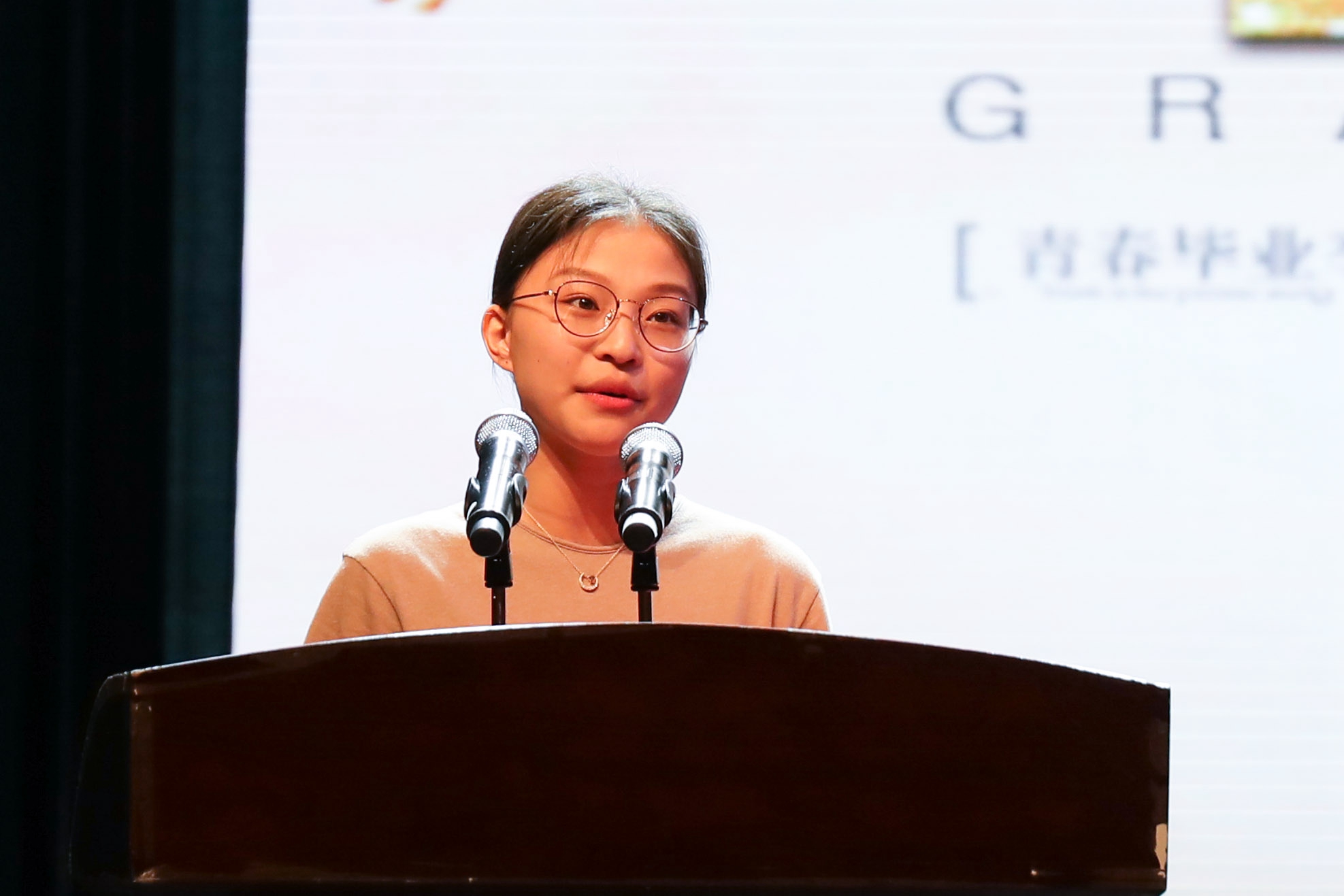 舞蹈系14级表导班学生邵佳倩作为毕业生代表发言。离别之际,在浙艺生活的点点滴滴,零零总总跃然而起。好像还能依稀看到三年前蒙蒙亮的早上我们在晨跑,好像听到音乐楼里歌声嘹亮,琴声悠扬。这一幕幕就像是剪贴画串联成的电影,播放着我们的所有的快乐和忧伤,记录着我们的青春和过往。现在还没有离开就已经开始怀念。但梦想总要启航,作为当代青年,让我们在实现中国梦的实践中放飞青春梦想。