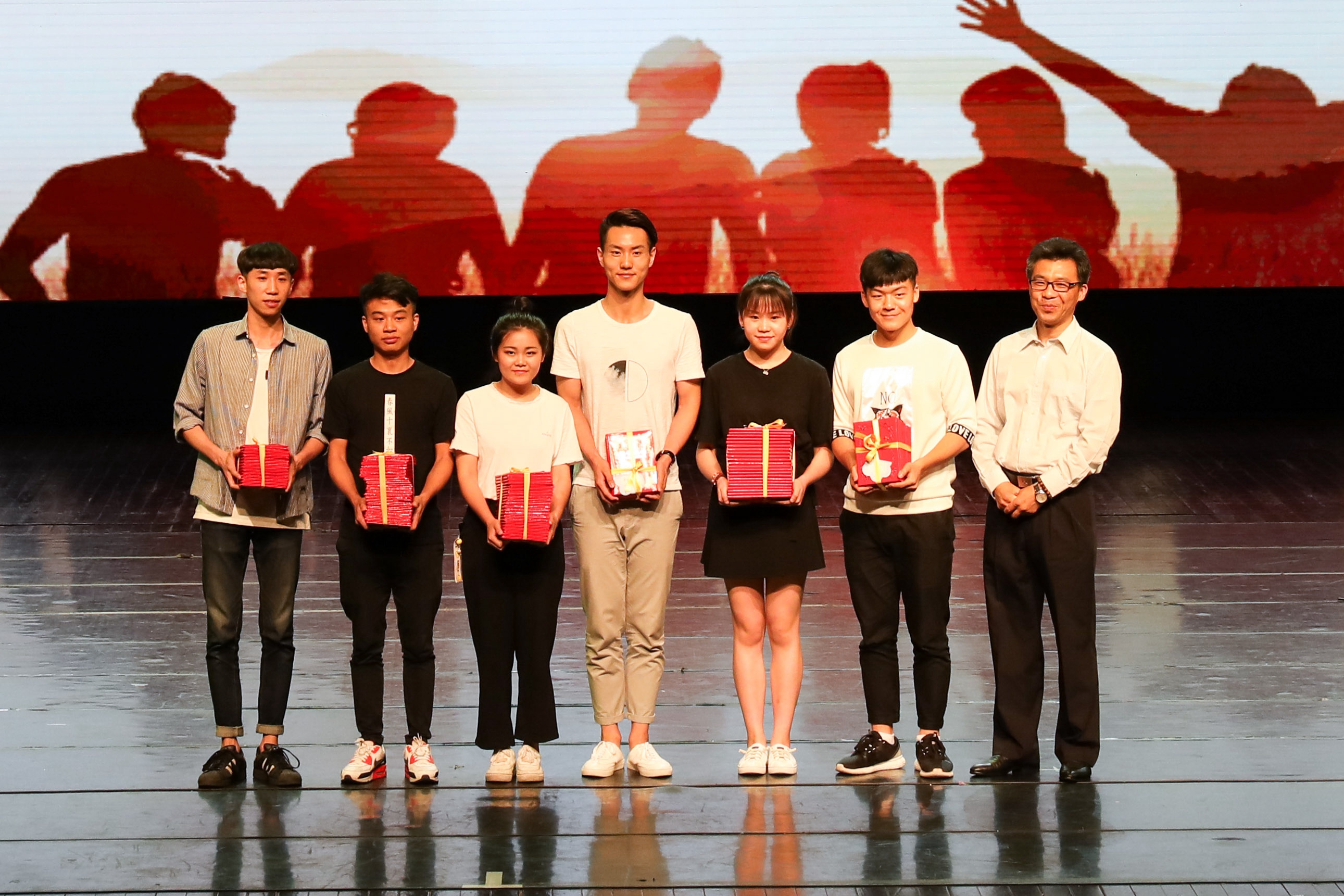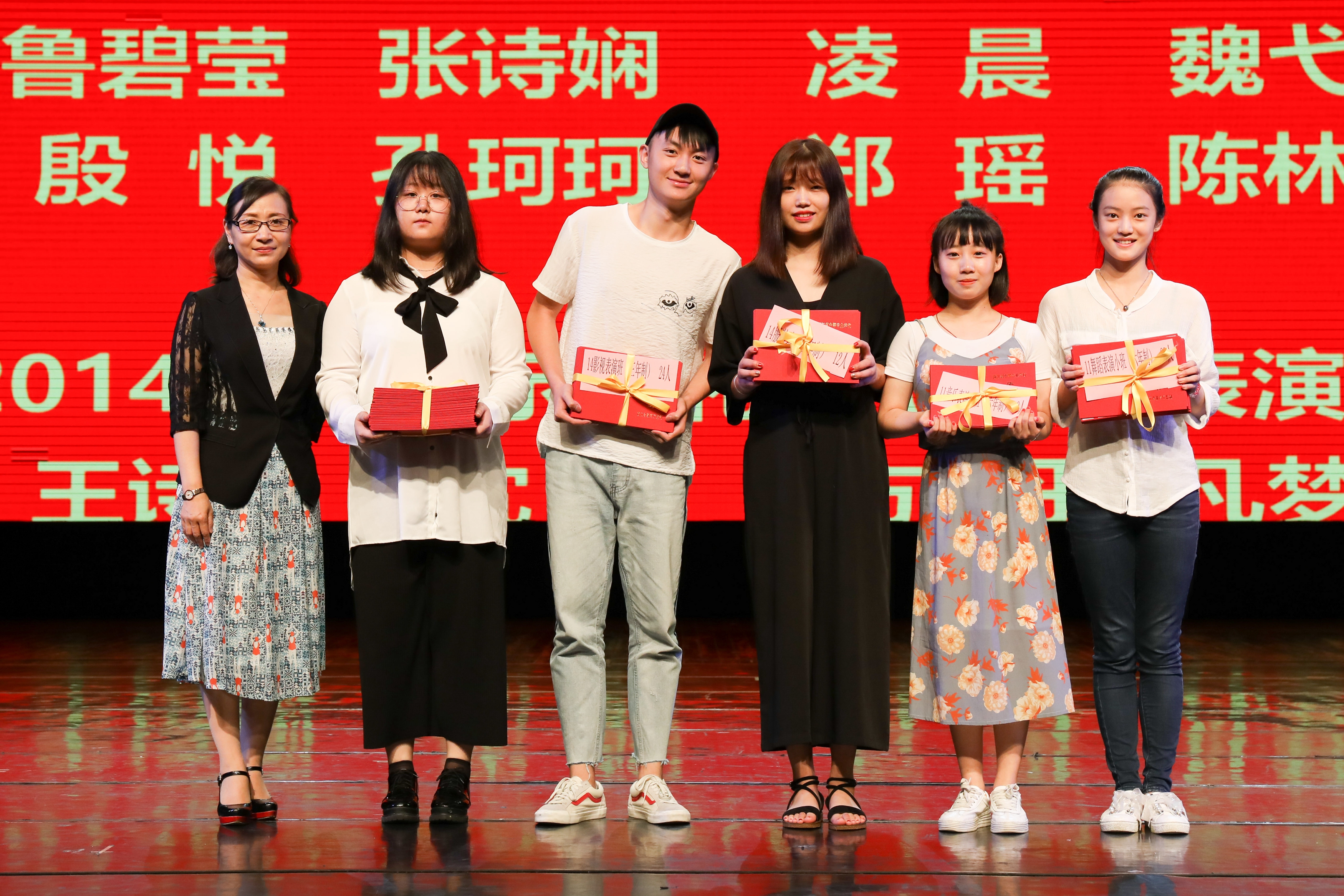 院领导黄杭娟、章轲、沈恒、夏开堂、徐芳、沈军甫,以及各系部负责人和班主任、任课教师、辅导员们都来了,这么多老师集体来为毕业生送行。偌大的实验剧场座无虚席,过道也满满都是人。