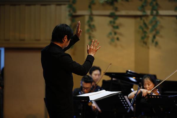 全场音乐会的乐曲有诗意,有越韵,有现代音乐词汇彼此相交融。作曲家丁樱的《剡水曲》,探索中国音乐的张力表现,虚实之变、动静之变、清浊之变,有着强烈深沉的音乐表现;青年作曲家景新的《神隐西罨居》,则运用了浙江仙居童谣的音乐素材,用西洋管弦乐与中国拉弦乐器、弹拨乐器共同演绎。这种新颖的音响与结构有着当代年轻作曲家的表达方式,不同乐器在乐曲进行中流淌、静止,而又互相编织。