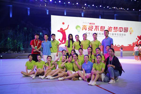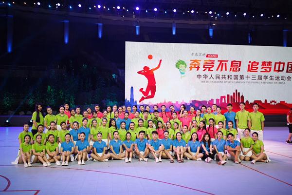 开幕式总时长100分钟左右,浙江艺术职业学院100余位师生参与了开幕式排练及演出,整个暑假都在排练中度过。浙艺戏剧系、舞蹈系、音乐系学生参与舞蹈《超越梦想》演出,这是运动会开幕式的压轴戏,开幕式节目是否精彩圆满,能否展现浙江学子的良好风貌,参演的师生们承担着重任。学院团委也选拔了8位志愿者全程参与全国学生运动会服务。