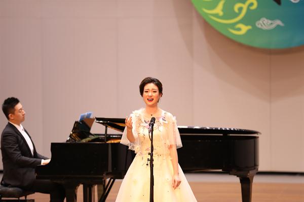 当晚浙江音乐厅大堂变成了花的海洋,花篮摆成了一条“花毯”,满眼望去都是祝胡素银音乐大讲堂暨师生音乐会圆满成功。胡素银为国家一级演员,第八届、九届浙江省政协委员,中国音乐家协会会员,浙江省音乐家协会声乐专业委员会顾问。曾是民盟浙江省委会委员,2005年11月荣获文化部“第七届区永熙优秀音乐教育奖”。对民族音乐文化和音乐表演艺术的执着,是70多岁的胡素银一直坚守与传承的。音乐会伊始,她提到中共中央办公厅、国务院办公厅印发的《关于实施中华优秀传统文化传承发展工程的意见》,就像一面旗帜,让她有底气在大讲堂上和大家交流中华民族优秀传统文化传承。传承发展工程最重要的是“人”,是教育,立德树人是根本任务。这就是讲座名称的由来。胡素银从1987年调入浙江艺术学校(现为浙江艺术职业学院)越剧科担任声乐老师讲起,讲述了一路走来,面对不同学生不同嗓音条件的开发,音乐教育理念在一代代学生身上的呈现,向观众传递民歌知识,讲述民歌故事。她说,自己一直以来坚信,做难事必有所得。民歌,需要有人记住,有人欣赏,有人传承。在这个时代,机会来了。