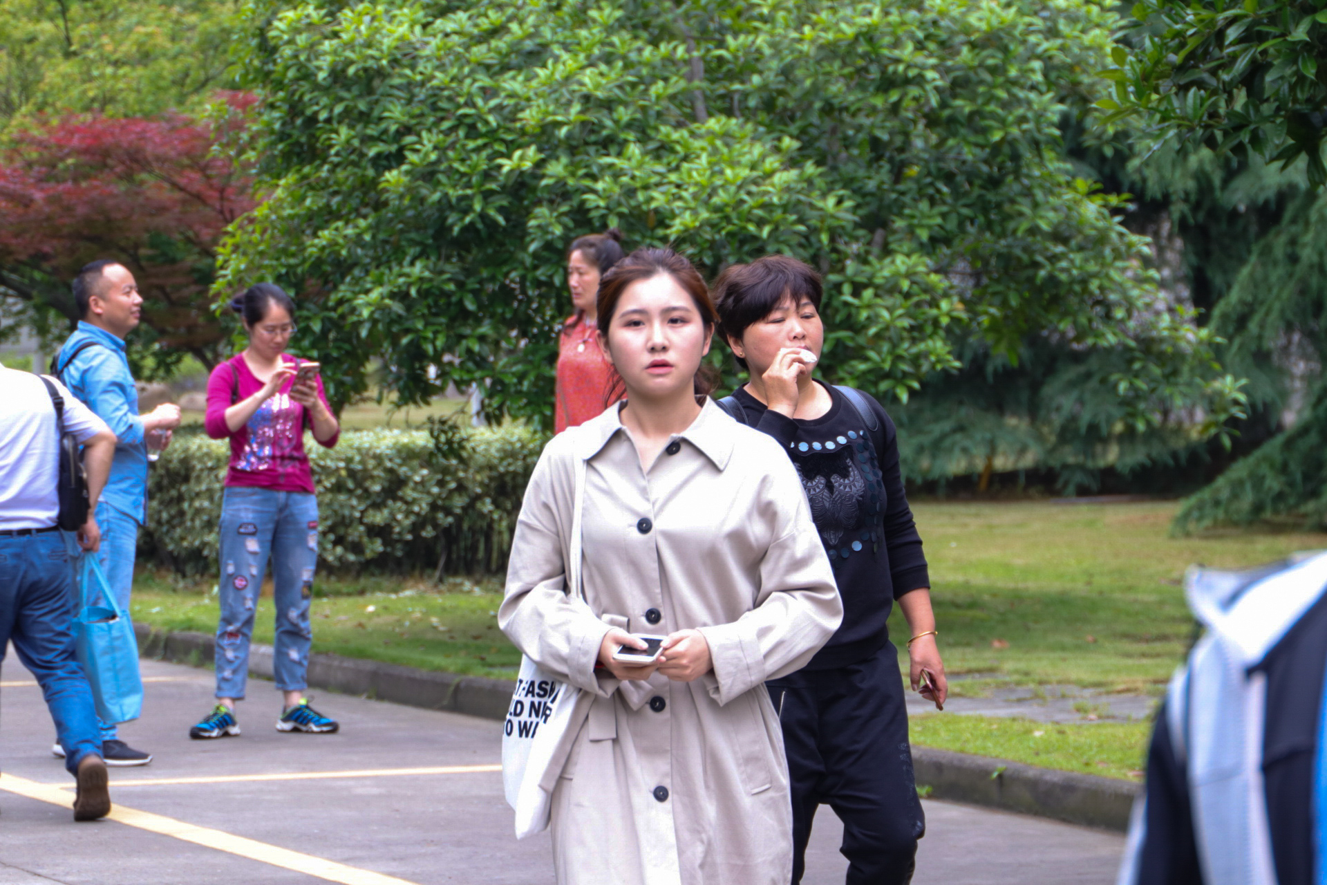 早晨七点,考生们就进入浙艺校园,或在艺池边,或在中心广场,或在图书馆旁,拿着台词,下着腰,喊两嗓开开嗓准备考试。五号楼前,红红火火的横幅正在鼓励考生:自信备考,为理想插上艺术的翅膀。