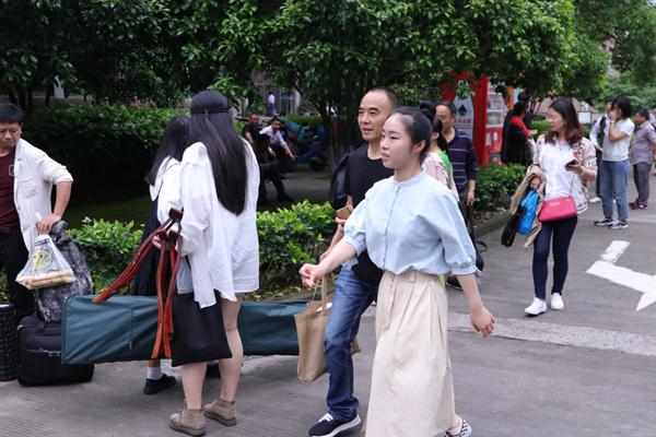 上午淅淅沥沥下起了雨,学校在音乐厅候考区和4号楼考场之间,用遮阳棚搭起一条七彩通道,以免考生淋雨,也保护了考生的乐器。尽管学校准备了充足的室内休息区,还提供茶水等,家长们依然宁可冒雨站在音乐厅外等候。在孩子通过七彩通道走向考场的时候,给他们送上一句,别紧张,好好考。一位家长说:“省艺校在我们那里很有名的,我们文化馆的老师能到省艺校培训都是很光荣的,现在叫浙江艺术职业学院了,艺术教育那肯定是厉害的。我孩子自己也蛮喜欢艺术的,所以她想要来考,我就支持她。毕竟孩子自己喜欢的东西学起来比较有动力的,希望她这次能够取得好成绩!”